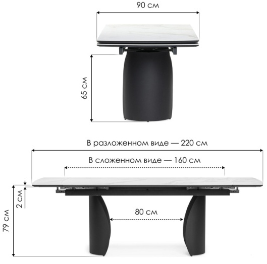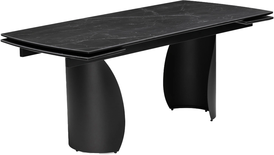 Кухонный стол раздвижной Готланд, 160(220), керамика, черный мрамор, каркас черный