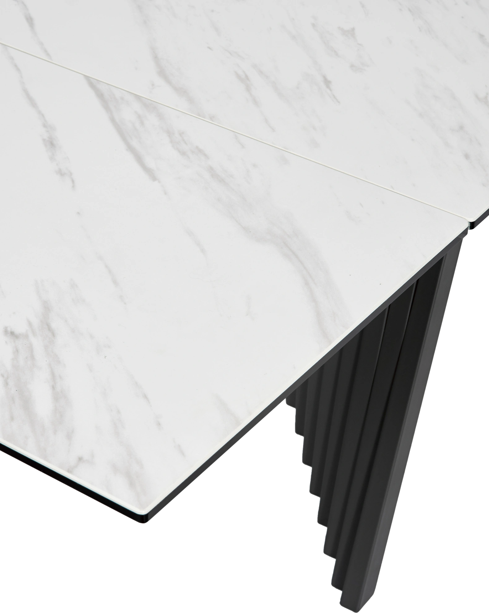 - итальянская матовая керамика в цвете белый мрамор с отражающими свет прожилками, толщина столешницы 13 мм (3 мм керамика + 10 мм стекло), не царапается, не впитывает загрязнения, термостойкая;