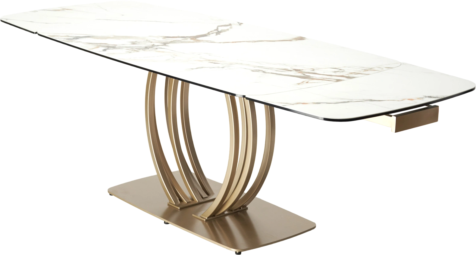 - двухсторонняя торцевая система раскладывания, две независимые вставки по краям по 40 см позволяют увеличить длину столешницы на 200 или 240 см при необходимости;