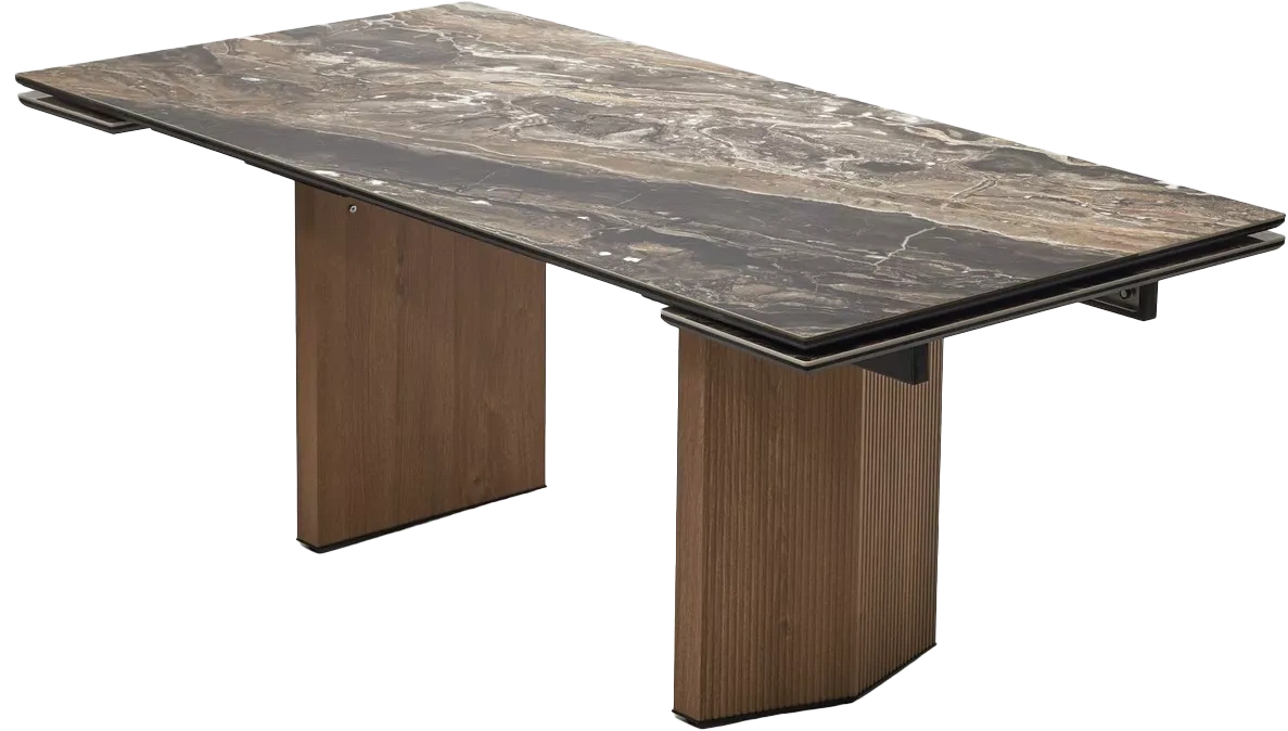 - основание стола - МДФ, цвет - дуб монтана, + металл;