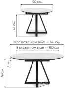 Кухонный стол раздвижной Нельсон, 100(140), керамика, alpine white, каркас черный