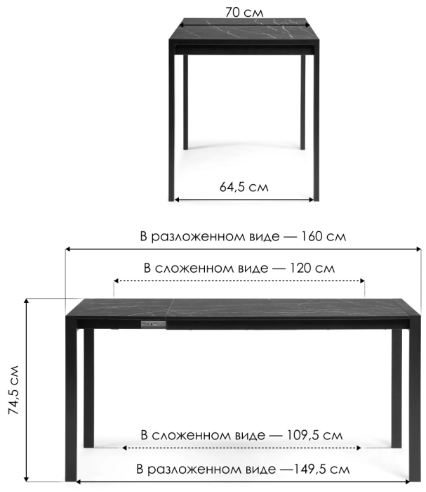 Кухонный стол раздвижной Центавр 120(160)x75, ЛДСП, дуб велингтон, каркас черный матовый