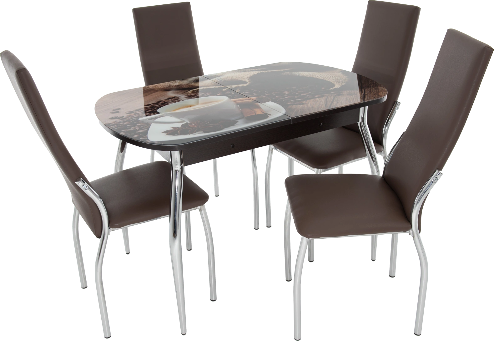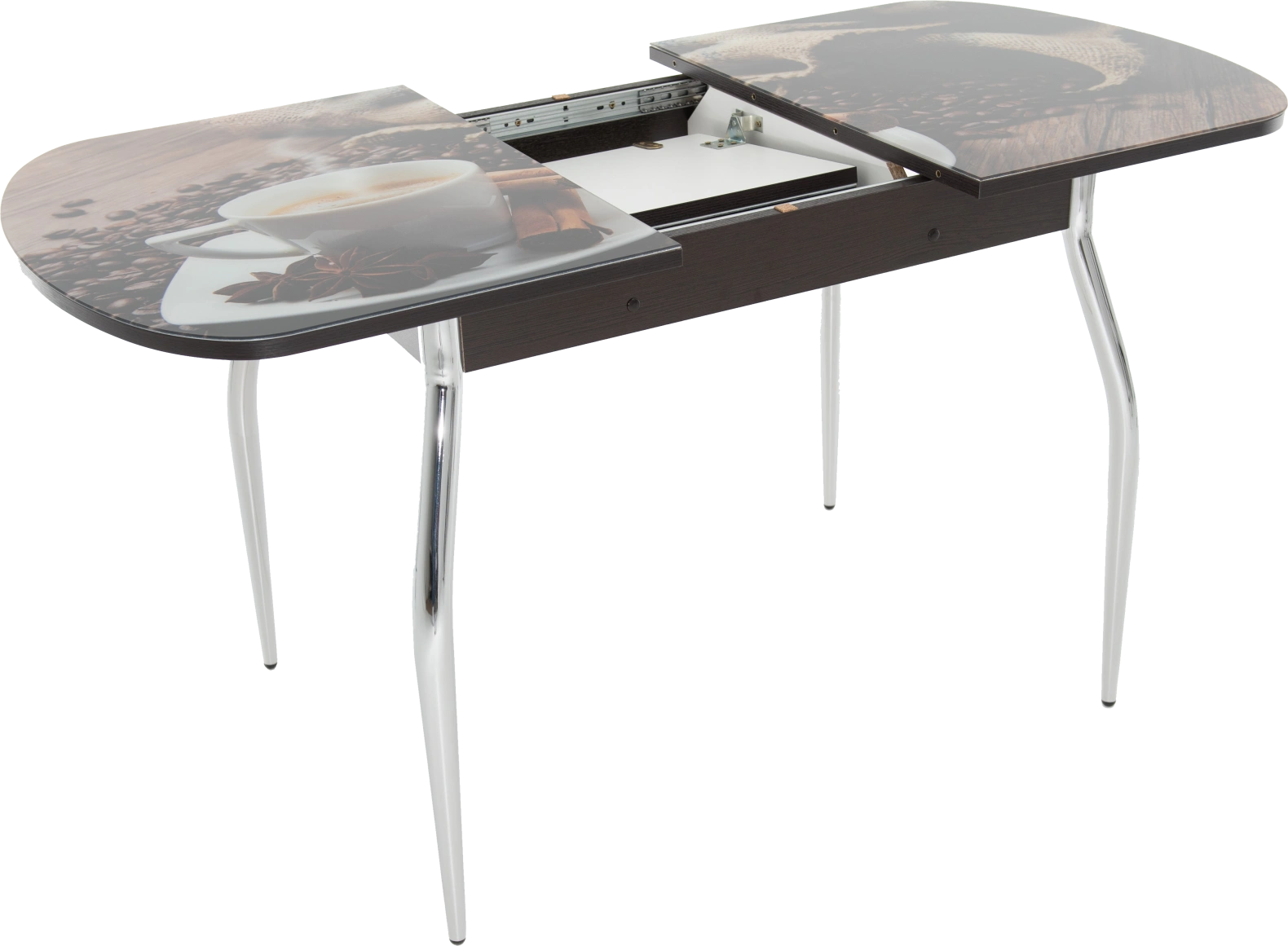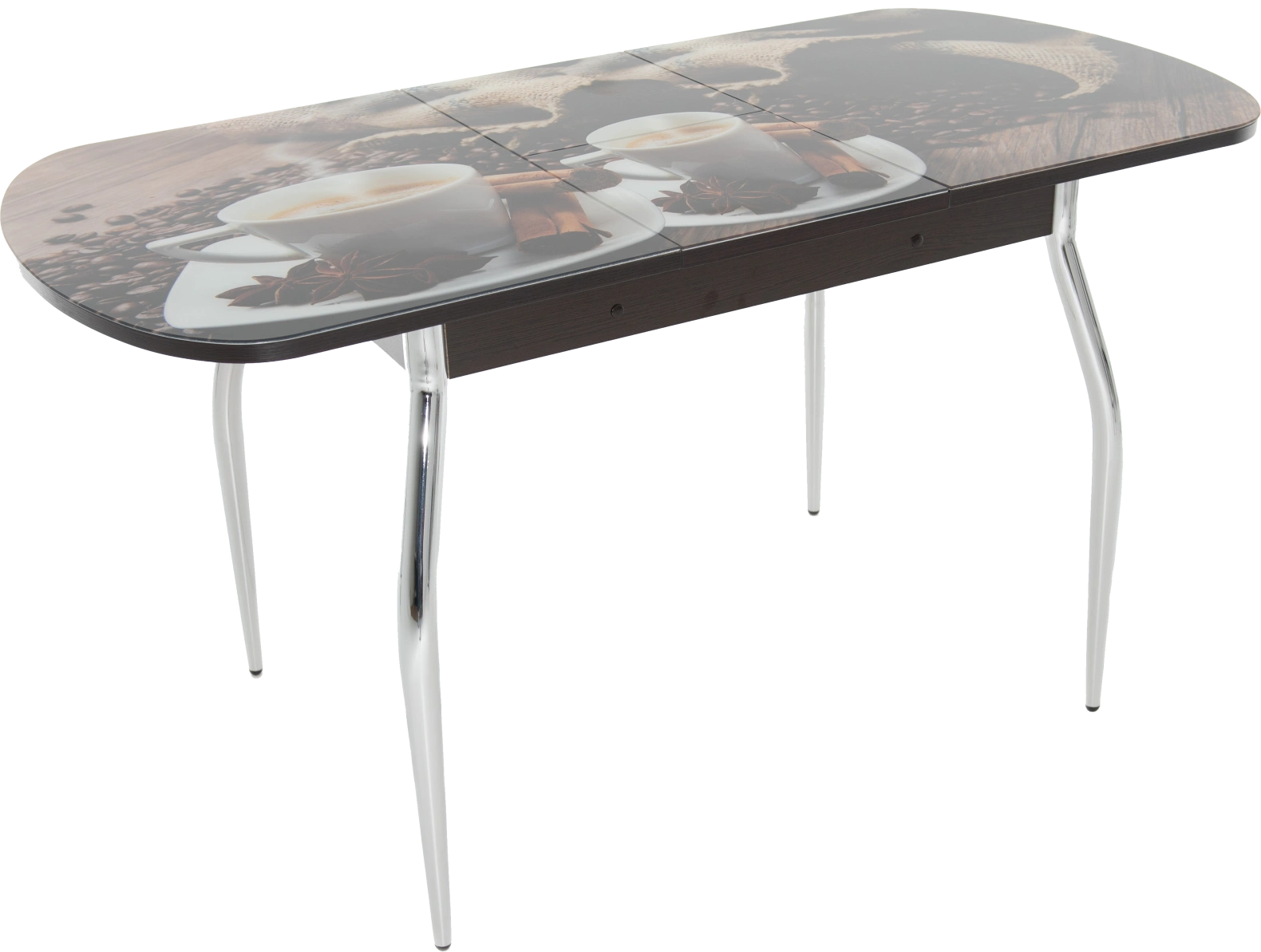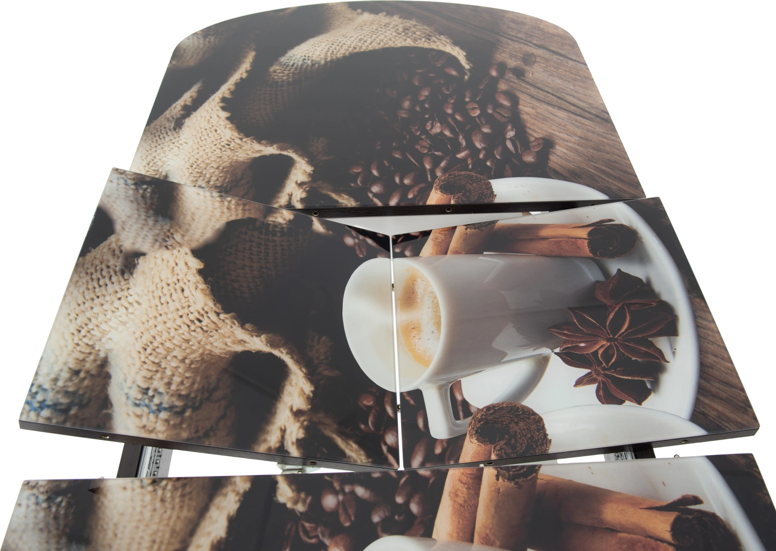 Кухонный стол Ривьера с фотопечатью, рисунок Кофе 22., каркас хром
