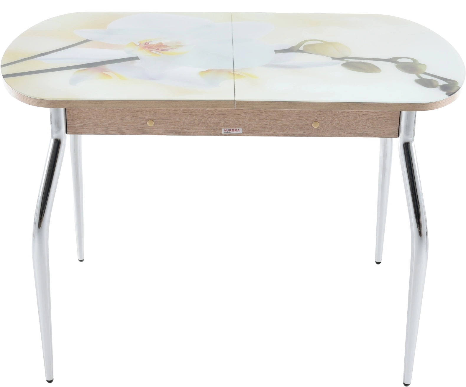 Кухонный стол Ривьера с фотопечатью Цветы-5., каркас хром