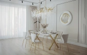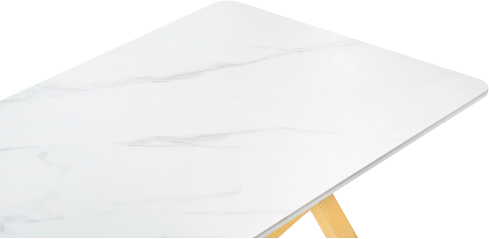 Кухонный стол Селена 3, 140x80x77, керамика, белый мрамор, каркас золотой