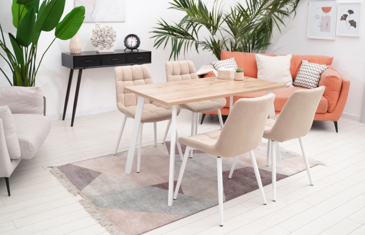 Кухонный стол Тринити Лофт, 120х60, ЛДСП, дуб делано светлый, каркас матовый белый