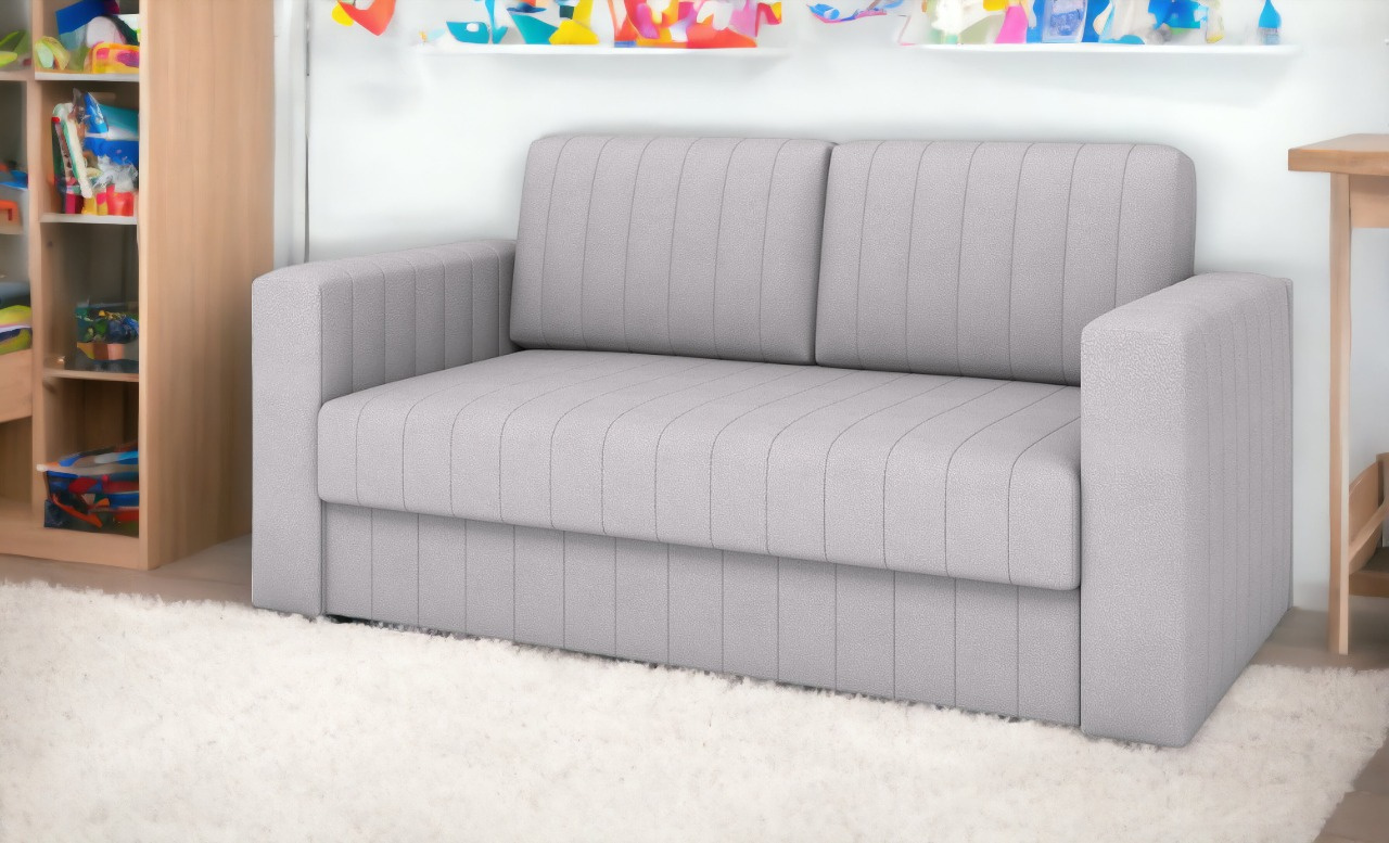✅ Кушетка с механизмом трансформации "соло". Она раскладывается вбок: достаточно простых движений, чтобы получить односпальную кровать. Откидной подлокотник можно закрепить слева или справа, что обеспечивает универсальное расположение мебели, вне зависимости от планировки комнаты.