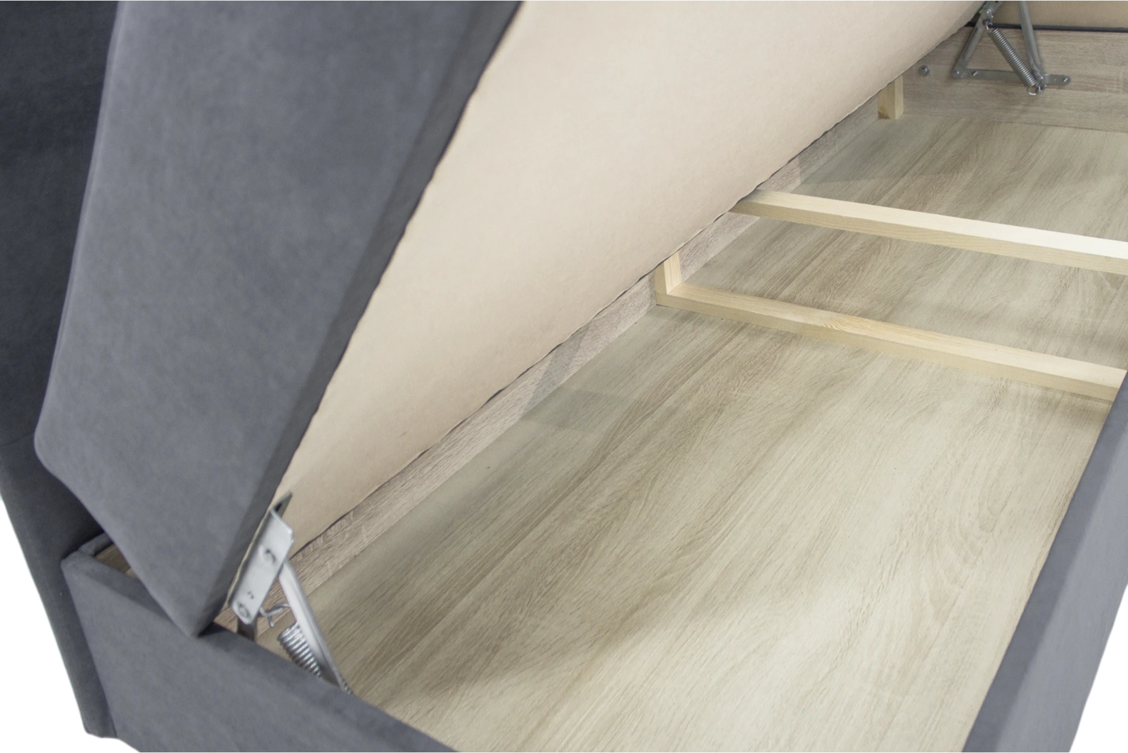 Внутри дивана располагаются емкость с ламинированным основанием, предназначенная для хранения вещей и белья, что сэкономит вам дополнительное рабочее пространство в комнате.