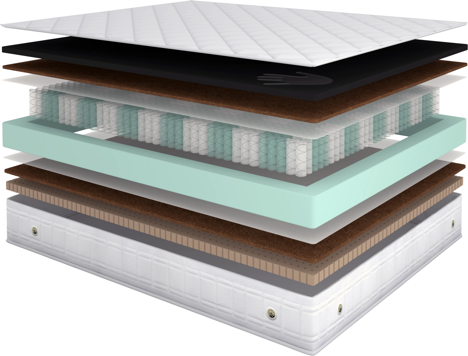 Вторая сторона, также средней жесткости, это микс перфорированного латекса с идеальной вентиляцией и натуральной кокосовой койрой.