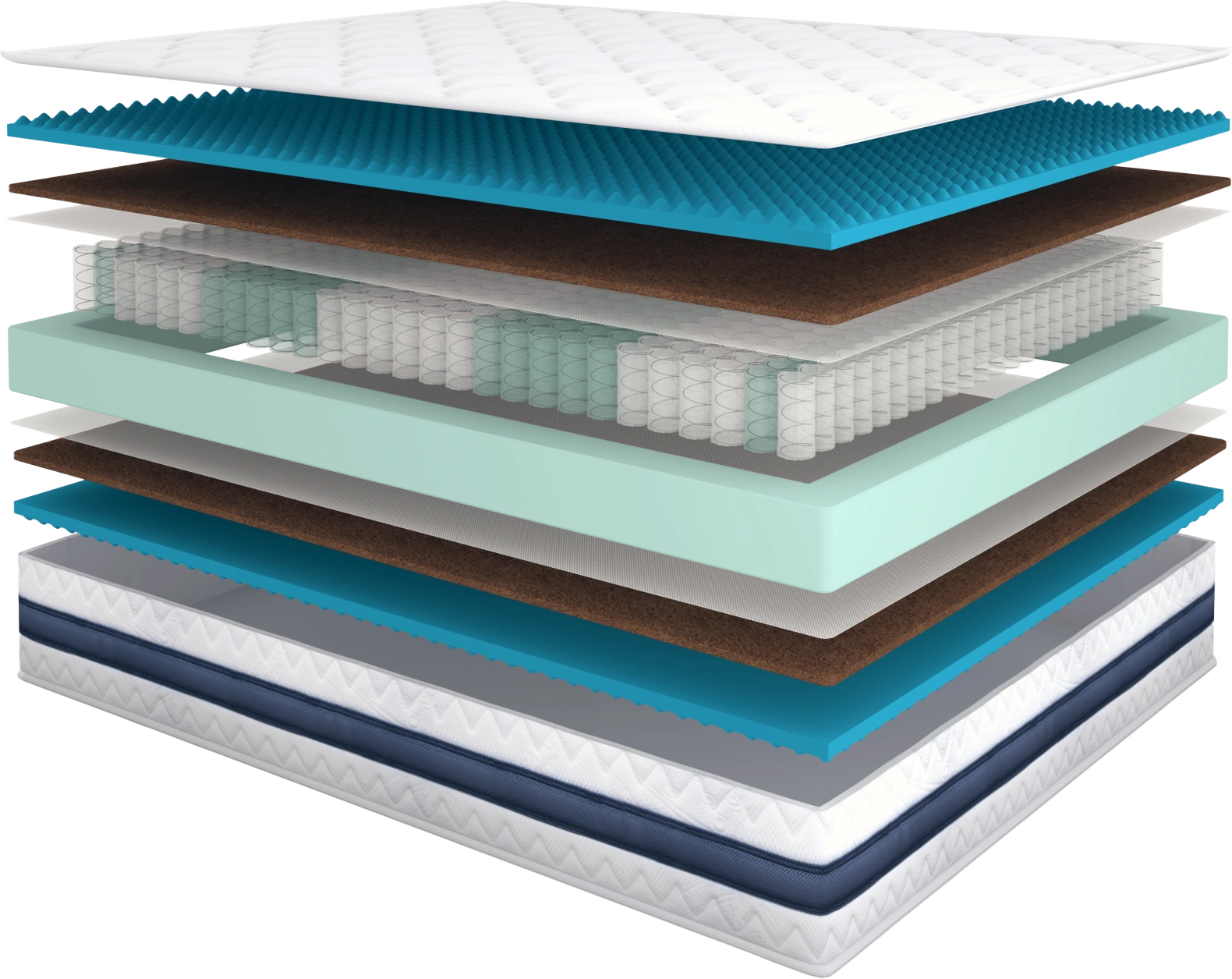 Пена более плотная и вязкая, дышащая, благодаря водной основе создает микромассажный эффект и делает сон крепким, а пробуждение - легким. Независимый пружинный блок дарит исключительный в своем роде комфорт при использовании матраса вдвоем.