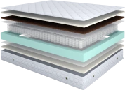 Высокоэластичный пенополиуретан и кокосовая койра обеспечивают среднюю жесткость с одной стороны. Долговечная и эластичная пена обеспечивает стабильную мягкость и упругость с другой стороны матраса.