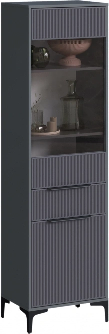 По бокам или рядом друг с другом можно расположить два высоких шкафа размером 55 × 40,3 × 196 см. Шкаф-витрина с стеклянной верхней дверцей отлично подходит для демонстрации декора и книг, а шкаф-пенал обеспечивает дополнительное закрытое хранение. Каждый из шкафов оснащен выдвижным ящиком и удобными полками.