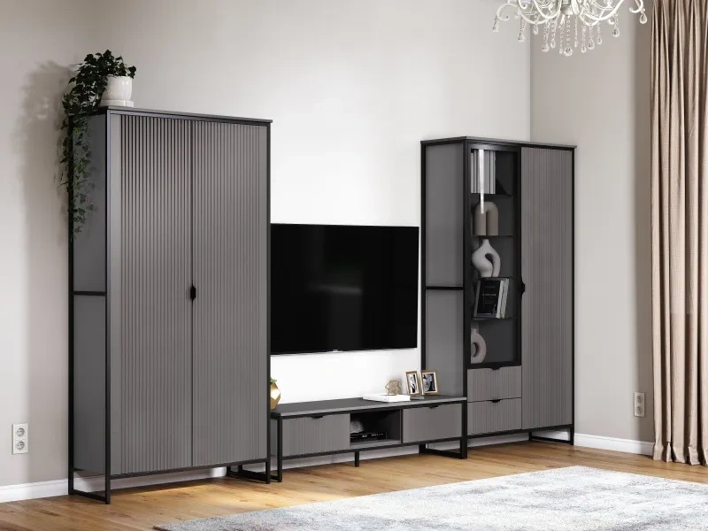 Коллекция модульной гостиной "Нора" - современный оригинальный стиль. Декоративная продольная фрезеровка на МДФ фасадах и опоры на металлокаркасе соответствуют модным тенденциям этого года в ведущих зарубежных коллекциях. Дизайн коллекции гармонирует со стилем минимализм и лофт.