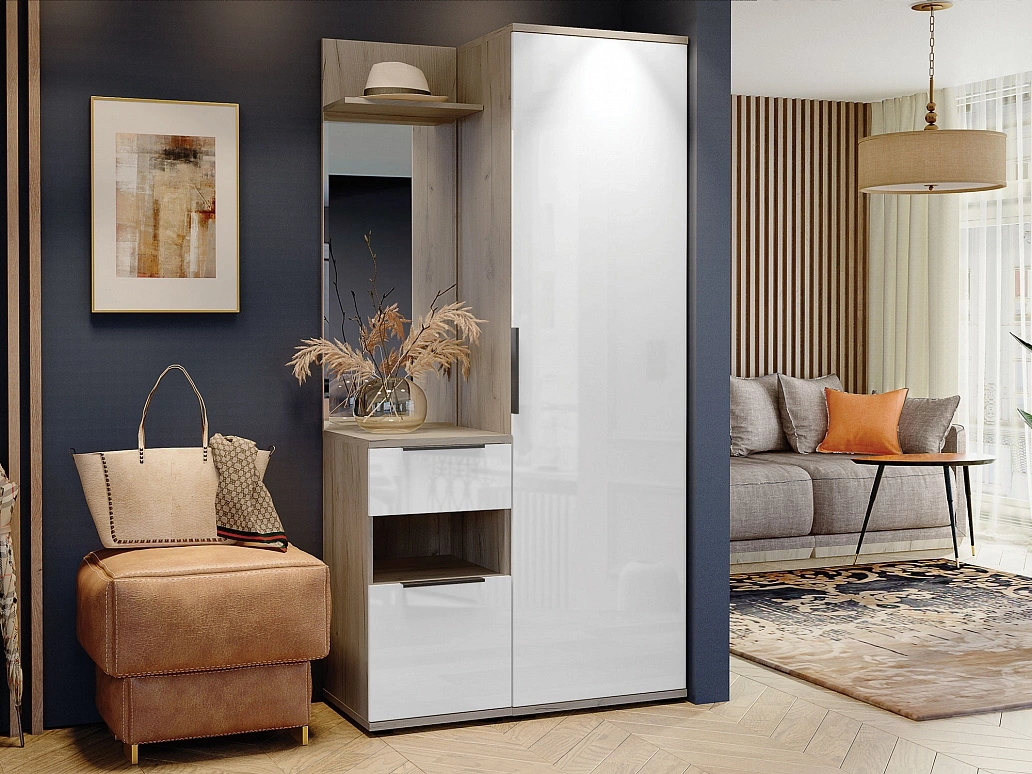 Модульная прихожая Альянс 3, дуб крафт / белый глянец
