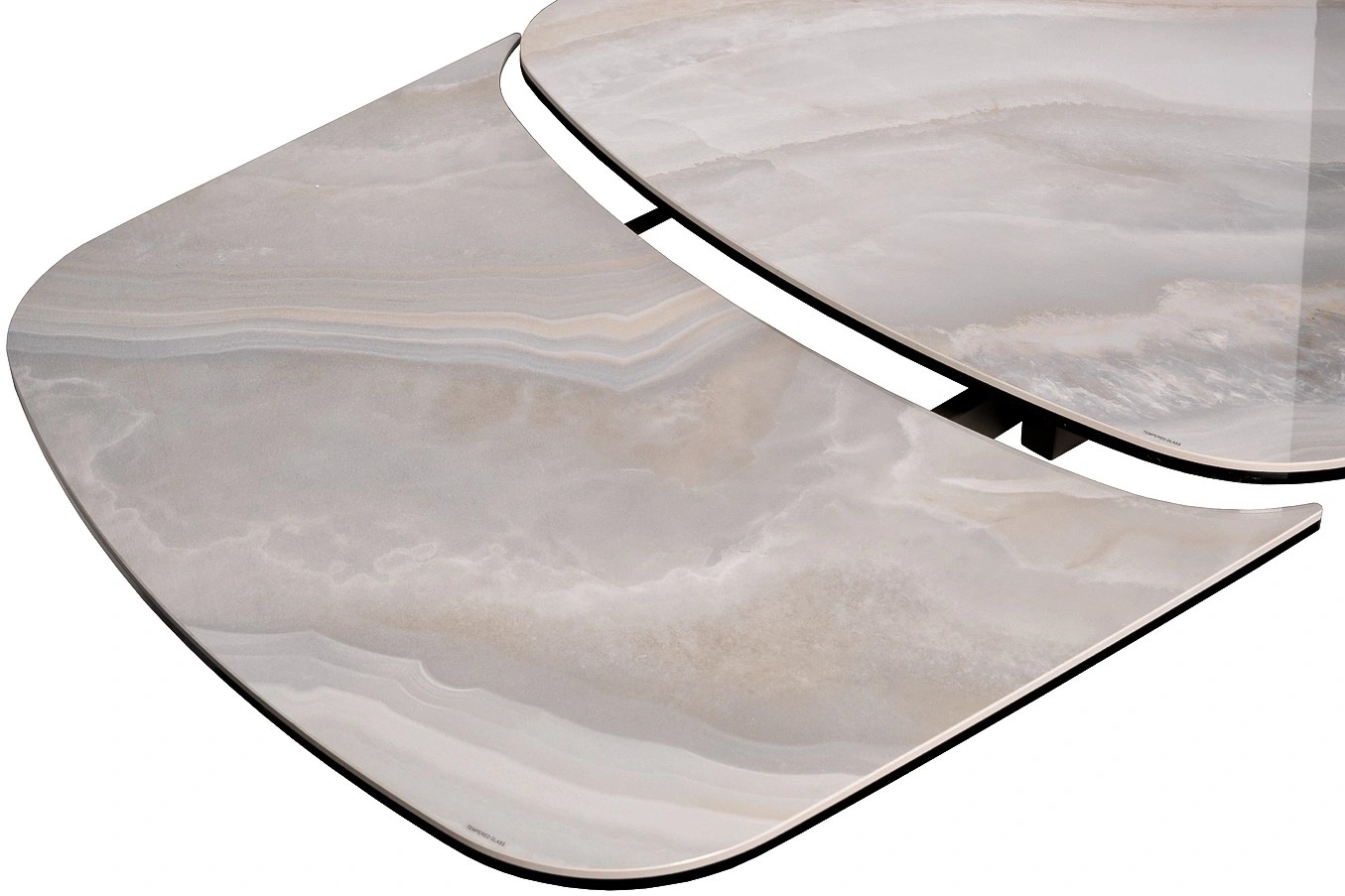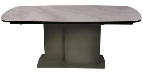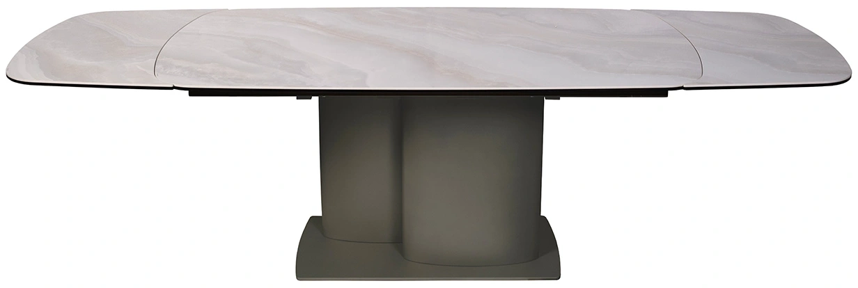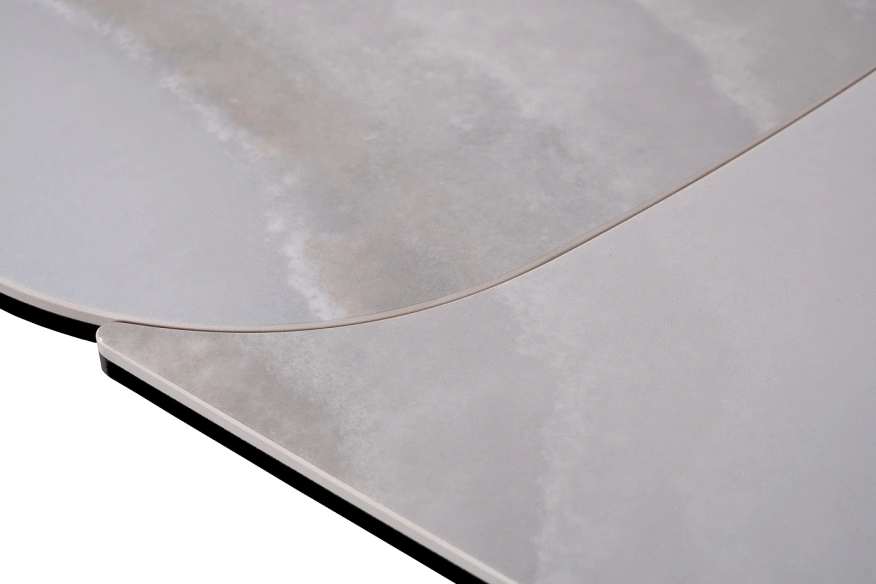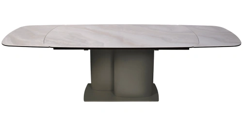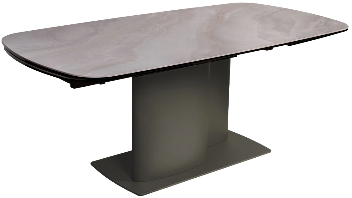 Раскладной обеденный стол из керамики и металла – идеальный выбор для современных интерьеров. Сочетание благородной керамической столешницы, имитирующей натуральный камень, с элегантной металлической основой создает изысканный и современный образ. Благодаря инновационному механизму, стол легко раскладывается, позволяя с комфортом разместить за ним как небольшую компанию, так и большое количество гостей. Керамическая столешница не только красива, но и практична – устойчива к высоким температурам и легко моется. Просьба обратить внимание, что при перемещении стол следует держать только за металлическое основание, а не столешницу! Иначе столешница может потрескаться.