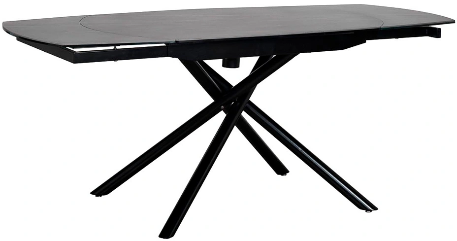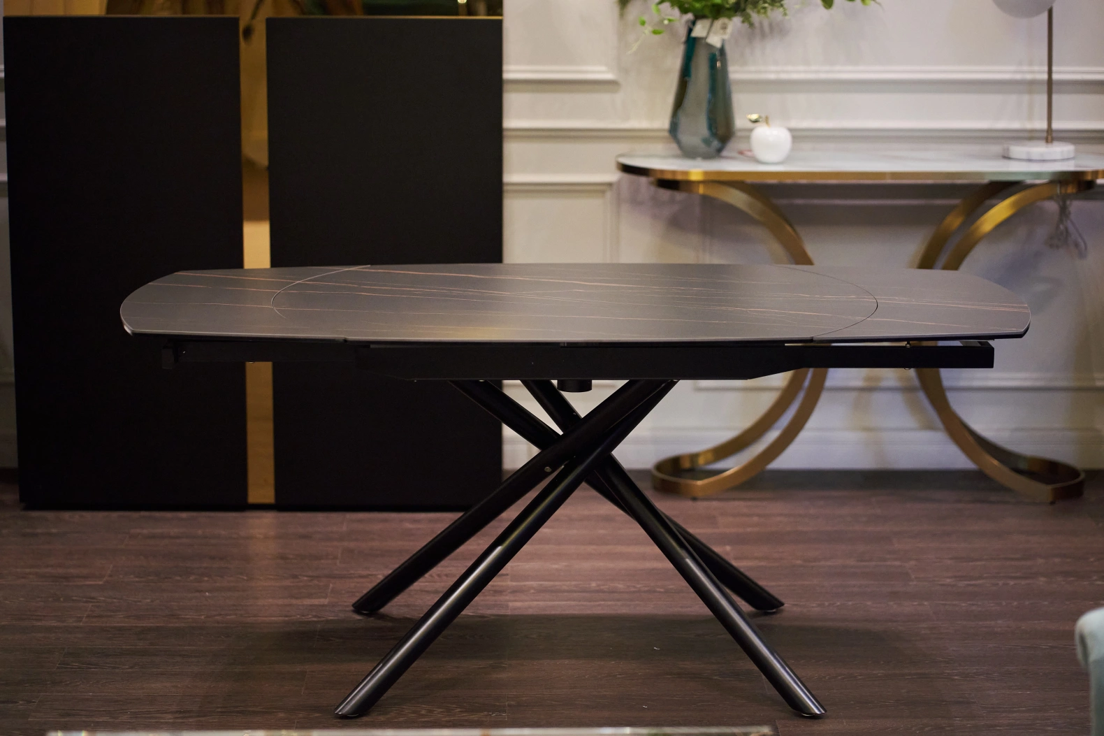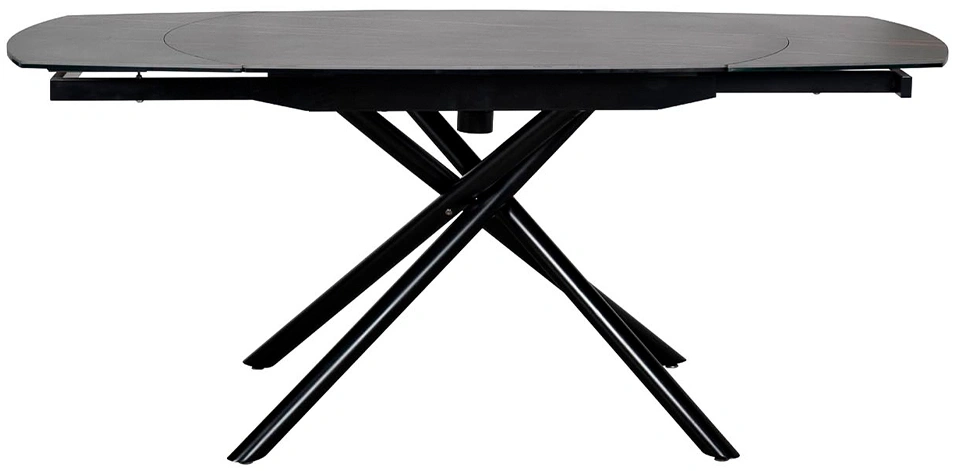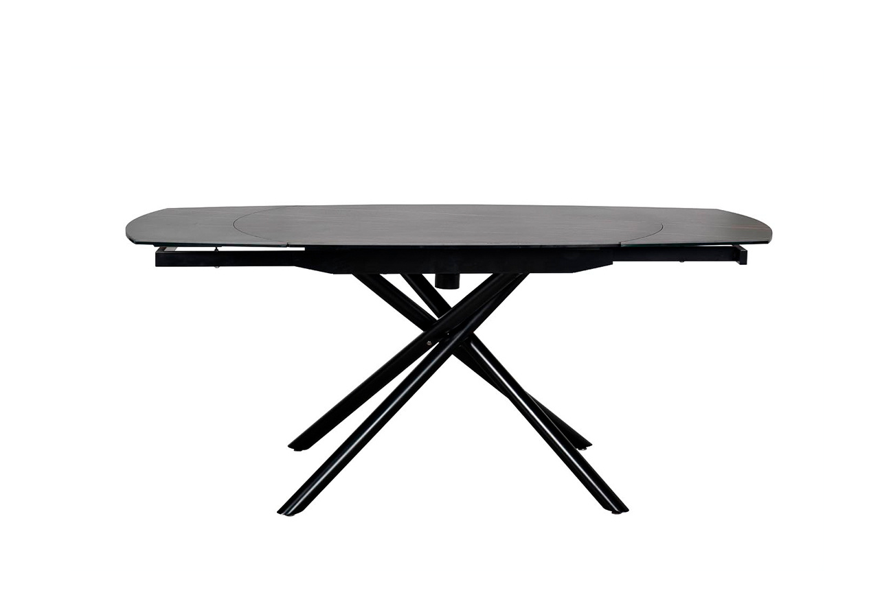 Удобный и элегантный обеденный стол-трансформер раскладывается одним движением руки. Просто поверните столешницу и стол увеличится в размере. Необыкновенный обеденный раскладной стол с двухслойной столешницей с коричневыми прожилками и черным основанием и ножками. Столешница выполнена из 5,5мм керамики на 6мм закалённом стекле. Такое покрытие в достаточной степени износостойко, декоративно и удобно в быту. В сложенном виде размер столешницы 120*89cм, высота - 77см. В разобранном - 178*89cм, высота 75см. Каркас и ножки изготовлены из покрашенного металла. Данная модель – для тех, кто стремится быть в тренде, кому нравится экспериментировать с новыми дизайнами, для кого простота и комфорт – главное. Наличие такого стола в интерьере — огромный плюс к удобству и способности обстановки изменится исходя из потребности владельца.