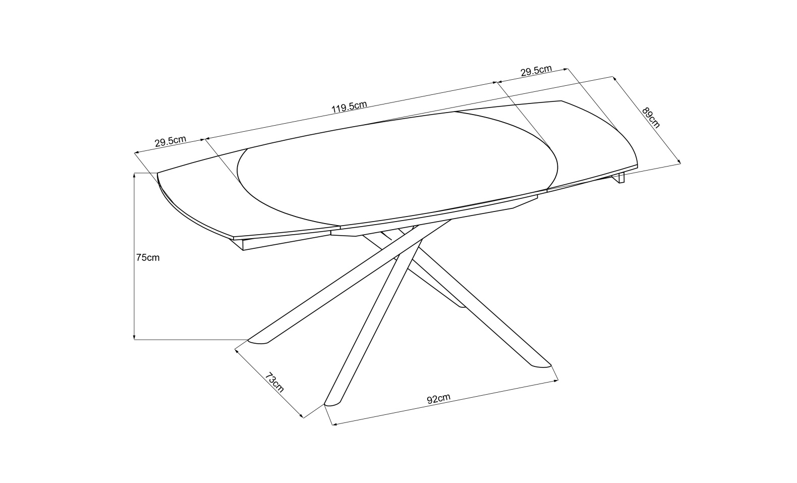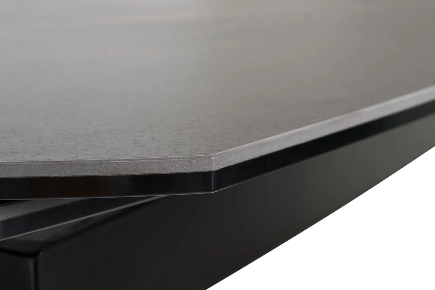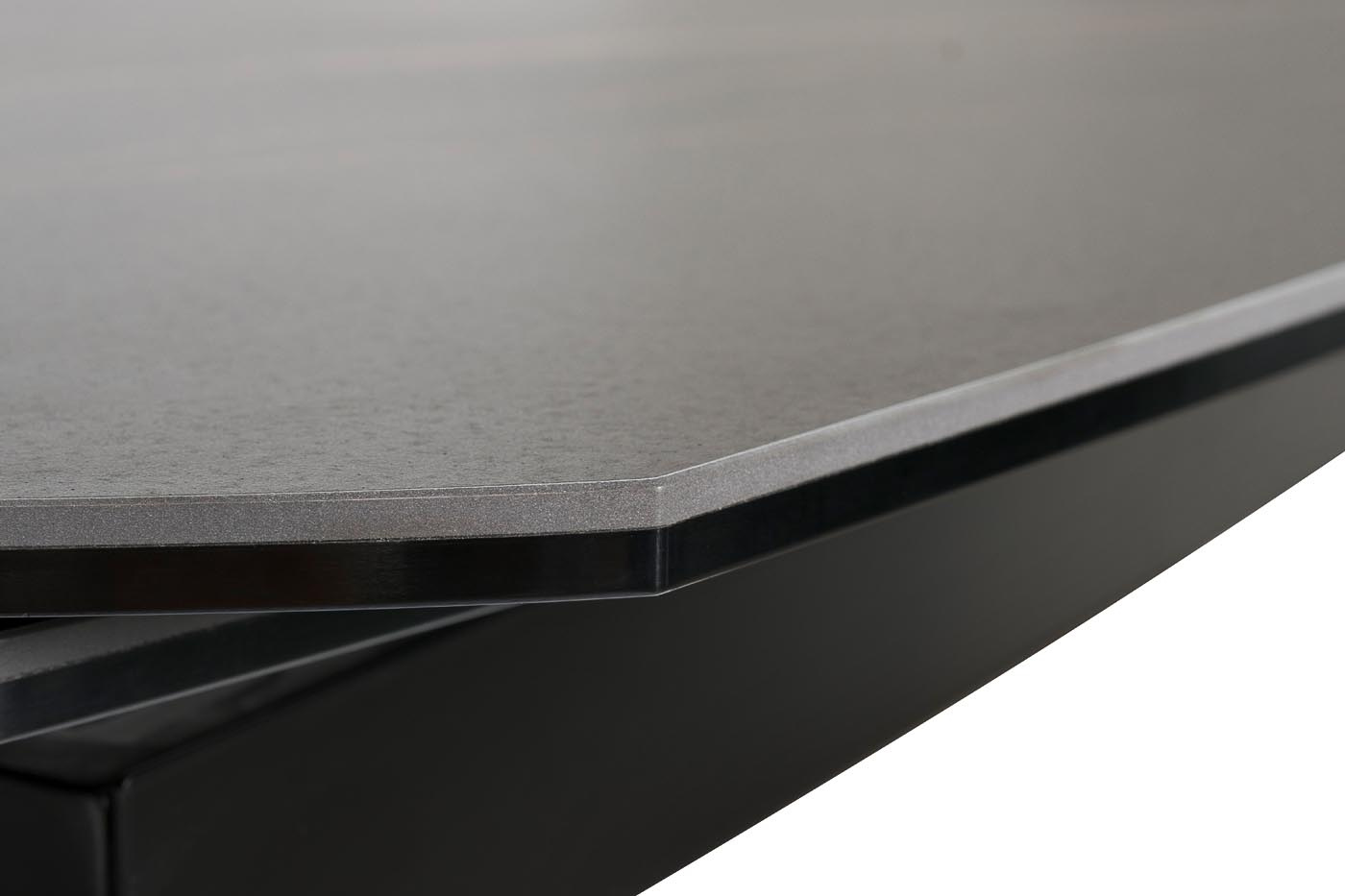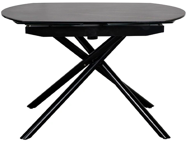 Удобный и элегантный обеденный стол-трансформер раскладывается одним движением руки. Просто поверните столешницу и стол увеличится в размере. Необыкновенный обеденный раскладной стол с двухслойной столешницей с коричневыми прожилками и черным основанием и ножками. Столешница выполнена из 5,5мм керамики на 6мм закалённом стекле. Такое покрытие в достаточной степени износостойко, декоративно и удобно в быту. В сложенном виде размер столешницы 120*89cм, высота - 77см. В разобранном - 178*89cм, высота 75см. Каркас и ножки изготовлены из покрашенного металла. Данная модель – для тех, кто стремится быть в тренде, кому нравится экспериментировать с новыми дизайнами, для кого простота и комфорт – главное. Наличие такого стола в интерьере — огромный плюс к удобству и способности обстановки изменится исходя из потребности владельца.