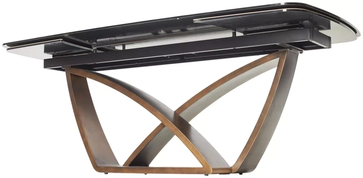 - двухсторонняя торцевая система раскладывания, две независимые вставки по 50 см позволяют увеличить длину столешницы на 250 или 300 см при необходимости;