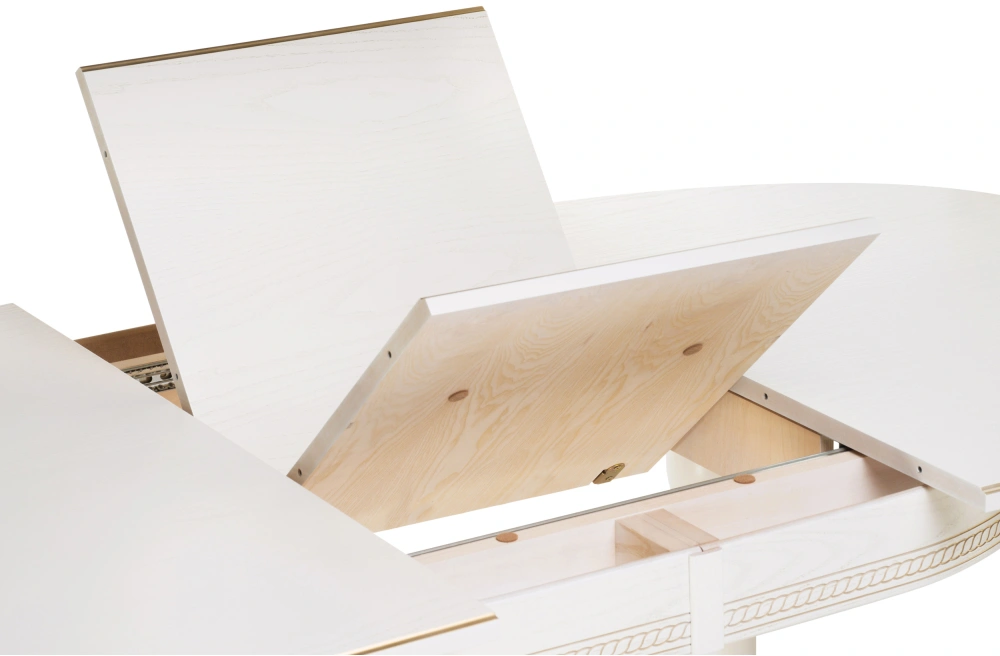 Толщина столешницы: 3 см. Материал каркаса - Массив бука; Материал ножек - Массив бука; Материал столешницы - Шпон / МДФ; Цвет каркаса - Молочный; Цвет ножек - Молочный; Цвет столешницы - Молочный; Цвет подстолья - Молочный; Ширина - 110; Высота - 77; Длина стола в разложенном виде - 200; Длина - 150;