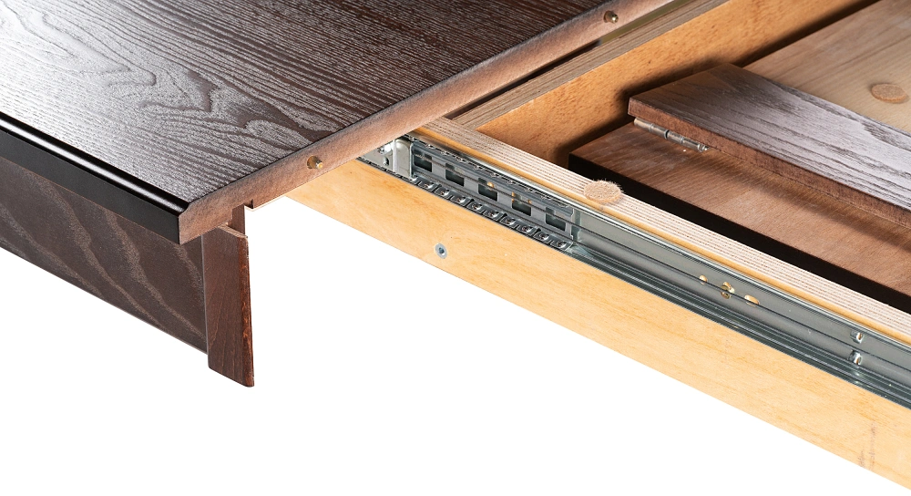 Толщина столешницы: 2 см. Материал каркаса - Массив бука; Материал ножек - Массив бука; Материал столешницы - Шпон / МДФ; Цвет каркаса - Орех; Цвет ножек - Орех; Цвет столешницы - Орех; Цвет подстолья - Орех; Ширина - 100; Высота - 76; Длина стола в разложенном виде - 260; Длина - 200;