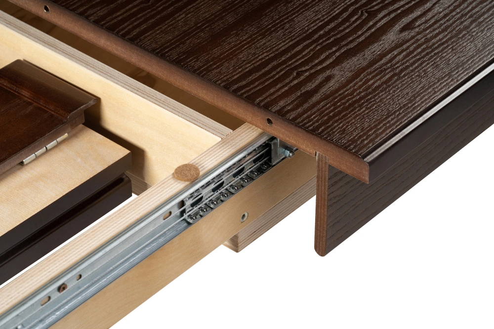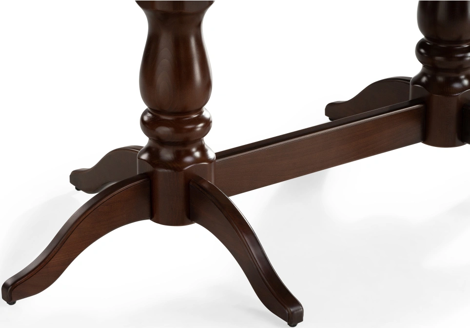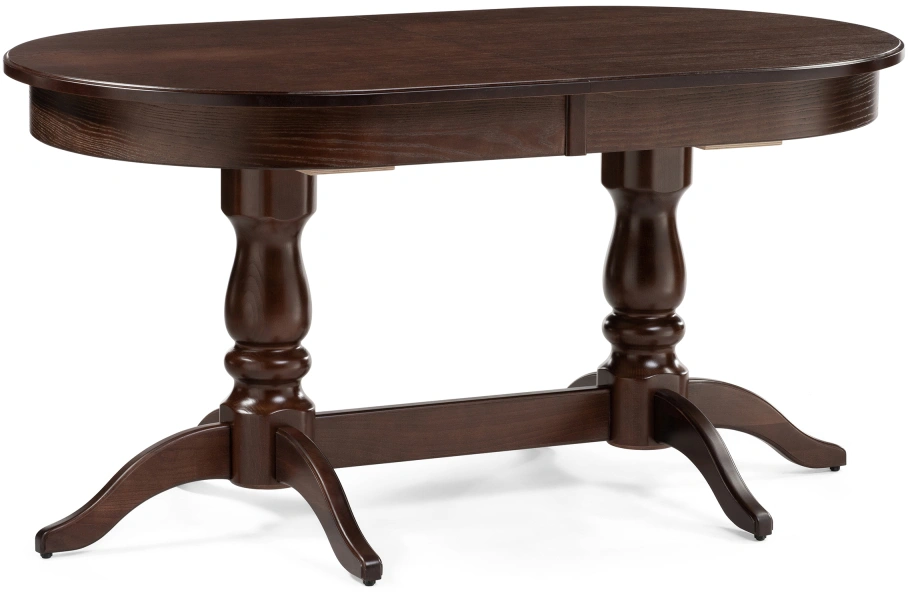 Толщина столешницы: 2,2 см. Материал каркаса - Массив бука; Материал ножек - Массив бука; Материал столешницы - Шпон / МДФ; Цвет каркаса - Орех; Цвет ножек - Орех; Цвет столешницы - Орех; Цвет подстолья - Орех; Ширина - 84; Высота - 76; Длина стола в разложенном виде - 200; Длина - 150;