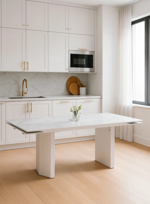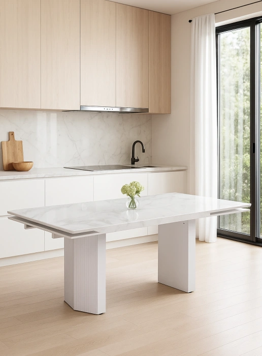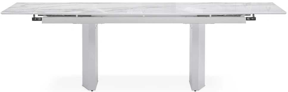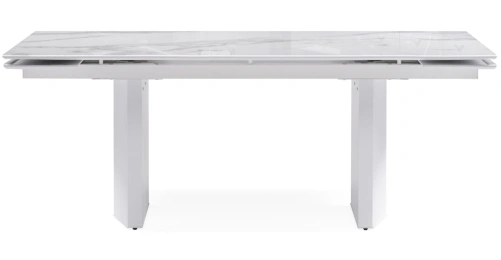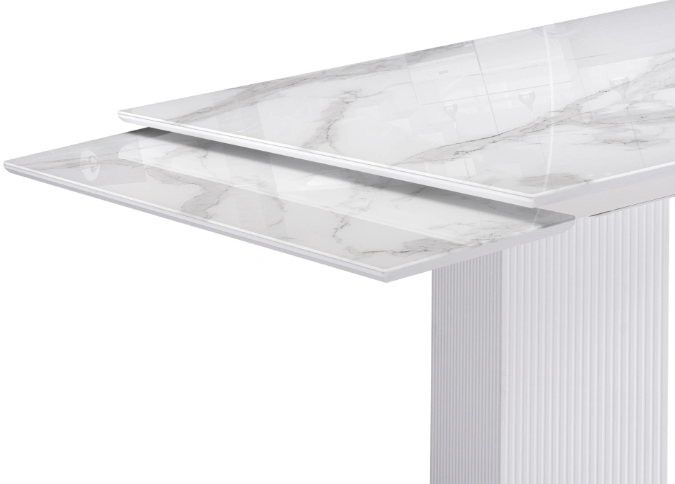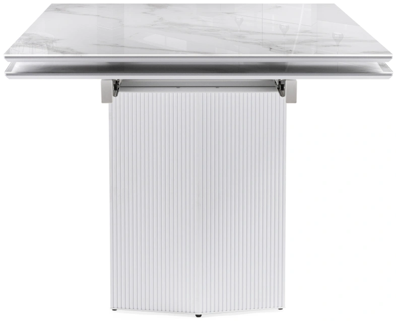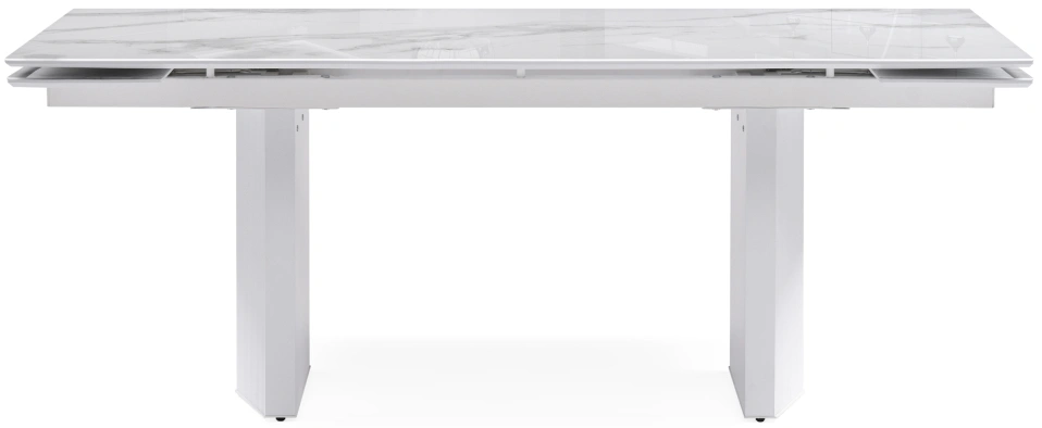 Толщина столешницы: 2 см. Материал каркаса - МДФ; Материал ножек - МДФ; Материал столешницы - Стекло / МДФ; Цвет каркаса - Белый; Цвет ножек - Белый; Цвет столешницы - Белый; Ширина - 100; Высота - 77; Длина стола в разложенном виде - 260; Длина - 200;