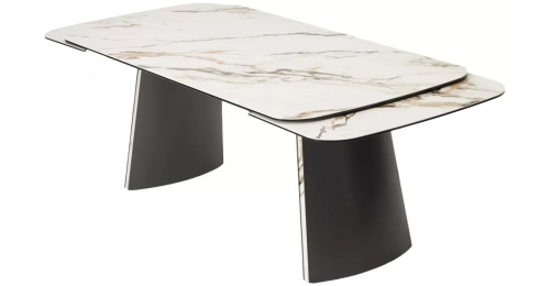 - двухсторонняя торцевая система раскладывания, две независимые вставки по краям по 40 см позволяют увеличить длину столешницы на 220 или 260 см при необходимости, итальянская керамика, толщина столешницы 11 мм (3 мм керамика + 8 мм закаленное стекло), не впитывает загрязнения, термостойкая;