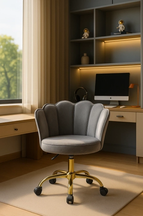 Компьютерное кресло Bud - это стильный и комфортный вариант для домашнего офиса. Кресло выполнено в классическом стиле с мягким сиденьем и спинкой из велюра, что обеспечивает комфорт при использовании. Хромированный каркас делает кресло очень прочным и стабильным, а колеса, прорезиненные для защиты напольного покрытия, позволяют легко перемещать кресло по комнате. Кресло также имеет регулировку высоты, что позволяет настроить его под себя и обеспечить максимальный комфорт при работе за компьютером.