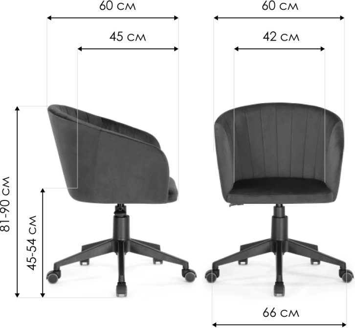 Спинка стула плавно переходит в подлокотники, высота которых позволяет практически полностью задвинуть кресло под стол стандартной высоты (75 см).