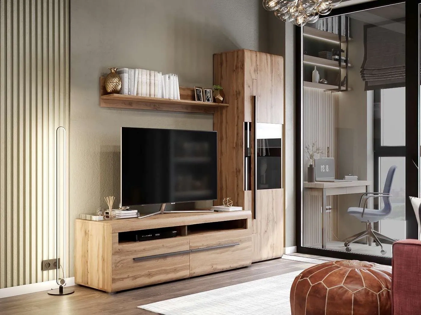 Корпус полки изготовлен из ЛДСП. Полка прекрасно сочетается с коллекцией для гостиной "Ницца".