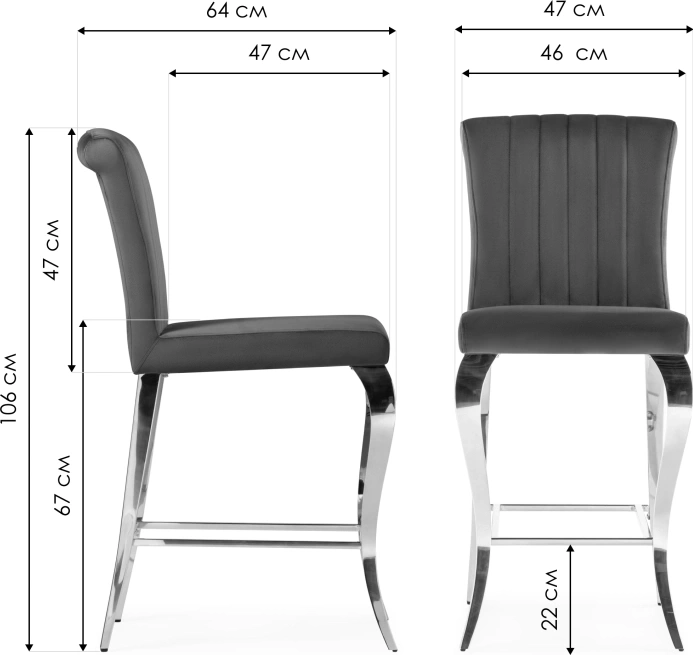 Стул Joan имеет элегантные ножки из гальванизированного металла, которые придают ему прочность и устойчивость. Сиденье стула выполнено из мелко-ворсистого велюра, что делает его мягким и комфортным для сидения. Стул также оснащен удобной подножкой под ноги, которая обеспечивает дополнительный комфорт. Стильный дизайн стула Joan позволяет использовать его как в домашней обстановке, так и в офисе или коммерческих помещениях.
