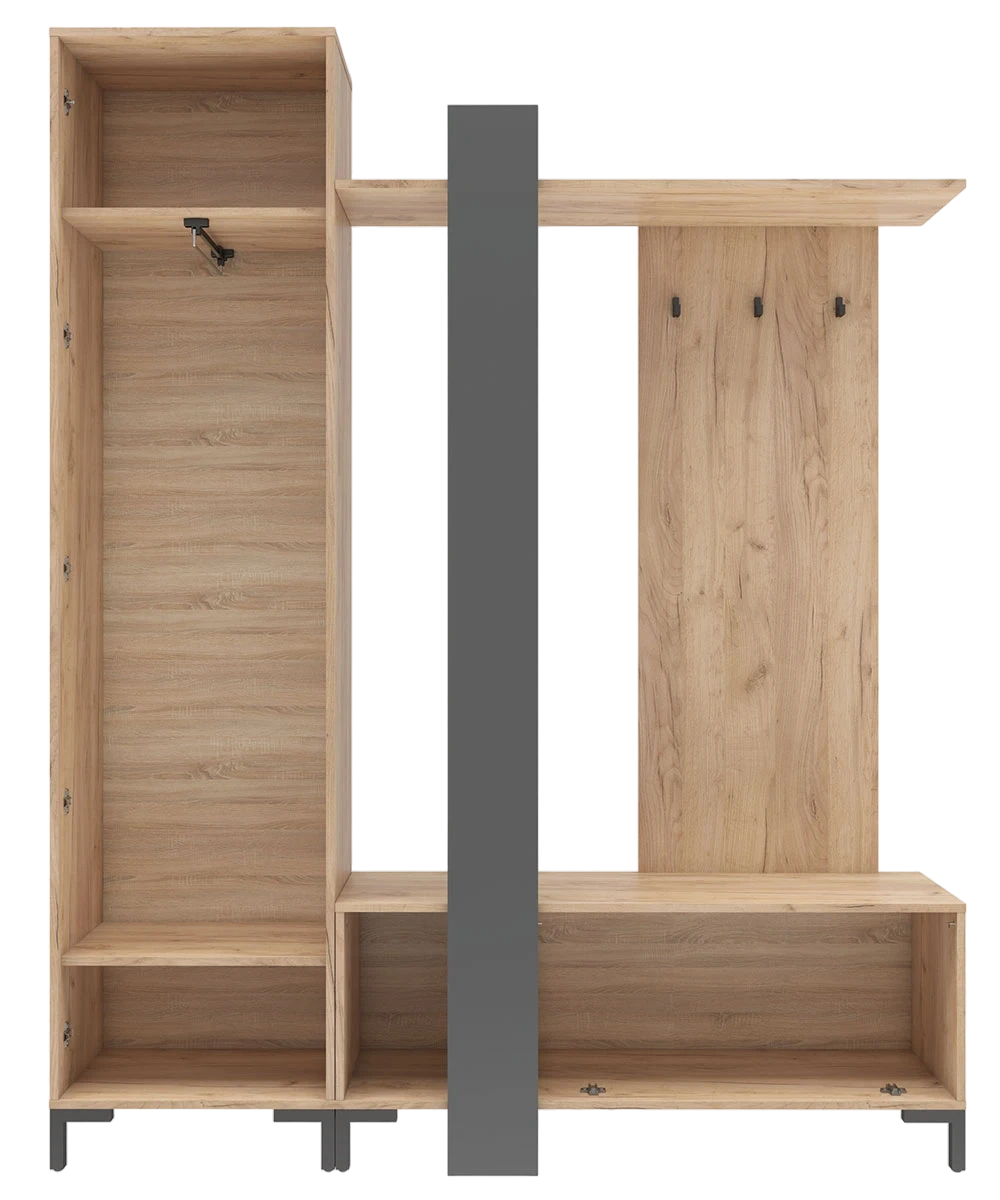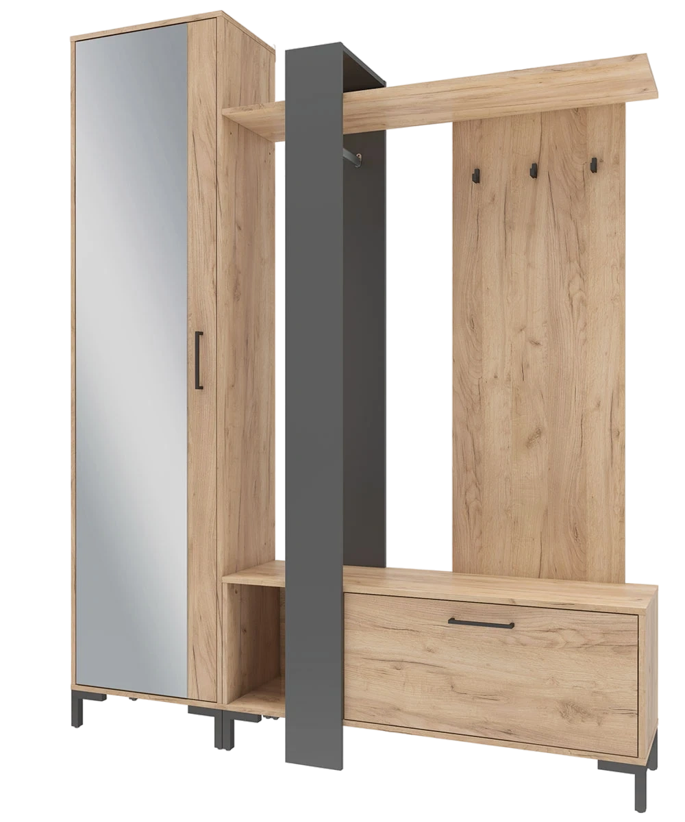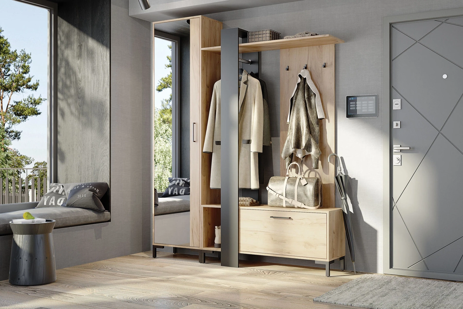 Прихожая комплектуется выдвижной штангой под одежду, стационарной штангой под одежду.