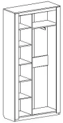 Двухдверный шкаф "Элана" с распашными дверцами имеет два отделения: отделение для белья с четырьмя съёмными и центральной стационарной полкой; платяное отделение со стационарной полкой и выдвижной стальной штангой.