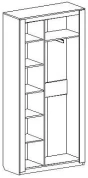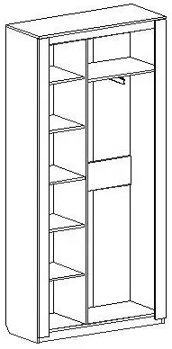 Двухдверный шкаф "Элана" с распашными дверцами имеет два отделения: отделение для белья с четырьмя съёмными и центральной стационарной полкой; платяное отделение со стационарной полкой и выдвижной стальной штангой.