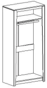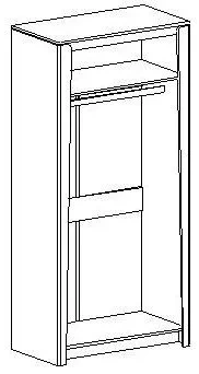 Внутреннее пространство шкафа разделено полкой на платяное с продольной стальной штангой и верхнее отделение для хранения белья. Фасады выполнены из МДФ, преимуществами данного материала являются влагостойкость, экологичность, гипоаллергенность, надёжность и долгий срок эксплуатации.