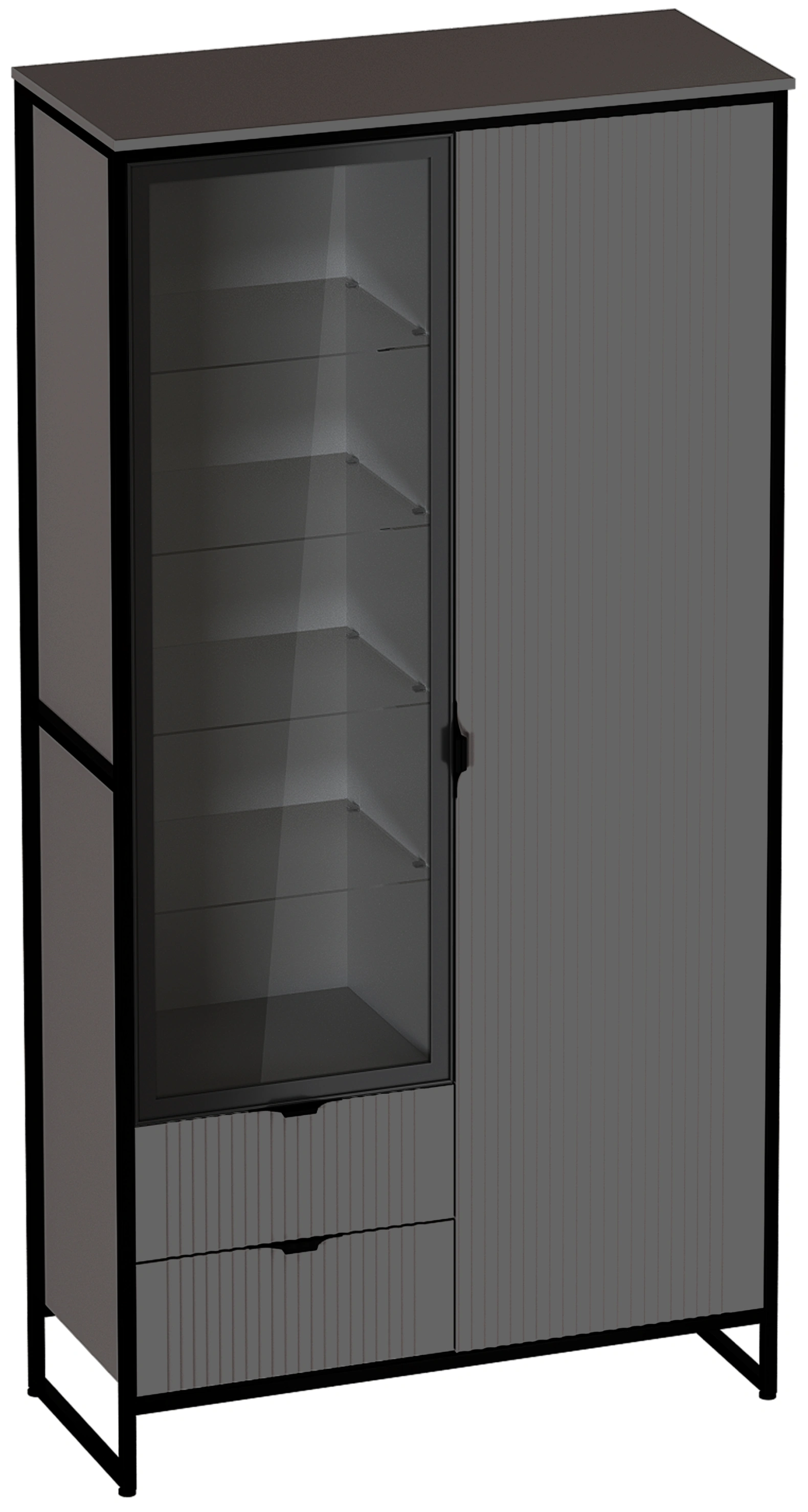 Шкаф выполнен в двух вариантах исполнения: Металл Бруклин / Графит и Металл Бруклин / Персидский жемчуг.