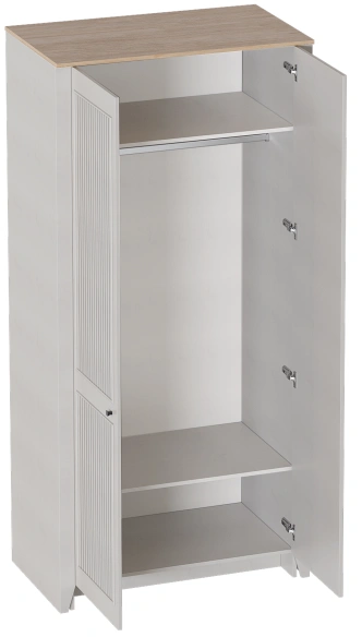 Шкаф 2 дверный Валенсия выполнен из (ЛДСП) в комбинации Дуб натуральный светлый / Персидский жемчуг.