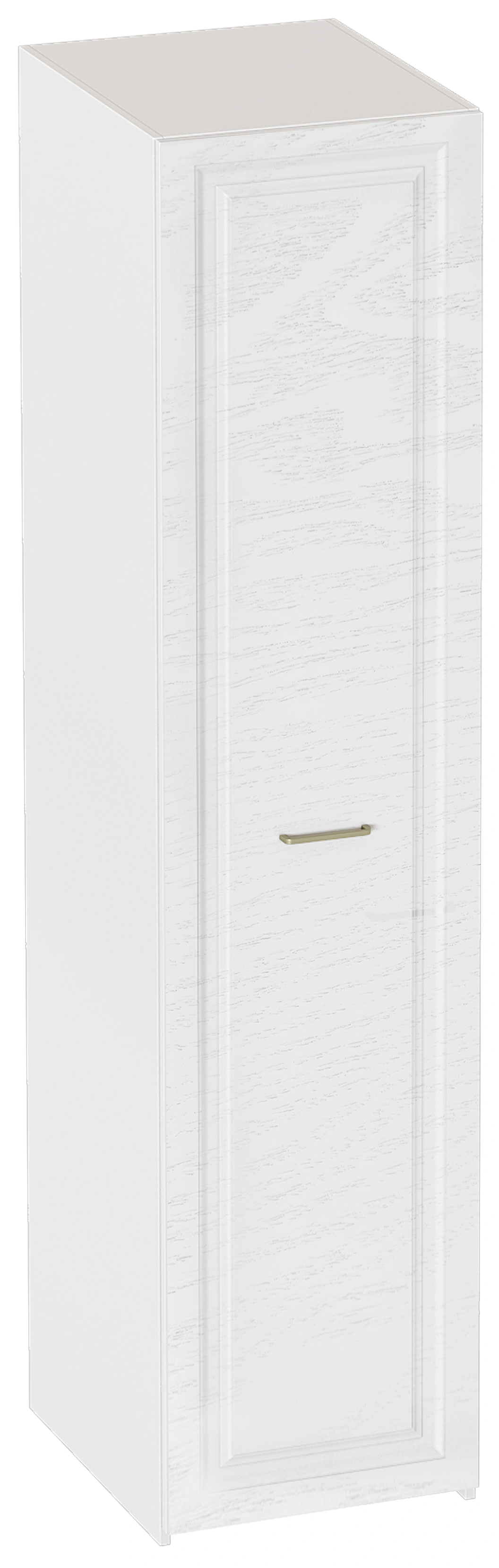 Шкаф выполнен в цвете Айс 06 / Белый Аляска. Классическая фрезеровка фасадов и ручки-скобы из брашированного золота придают изделию особый шарм и элегантность. Внутреннее пространство шкафа разделено на два отделения жёсткой полкой в верхней секции шкафа. Нижняя часть разделена ещё на 5 секций съемными полками. Двери оснащены петлями с амортизаторами.