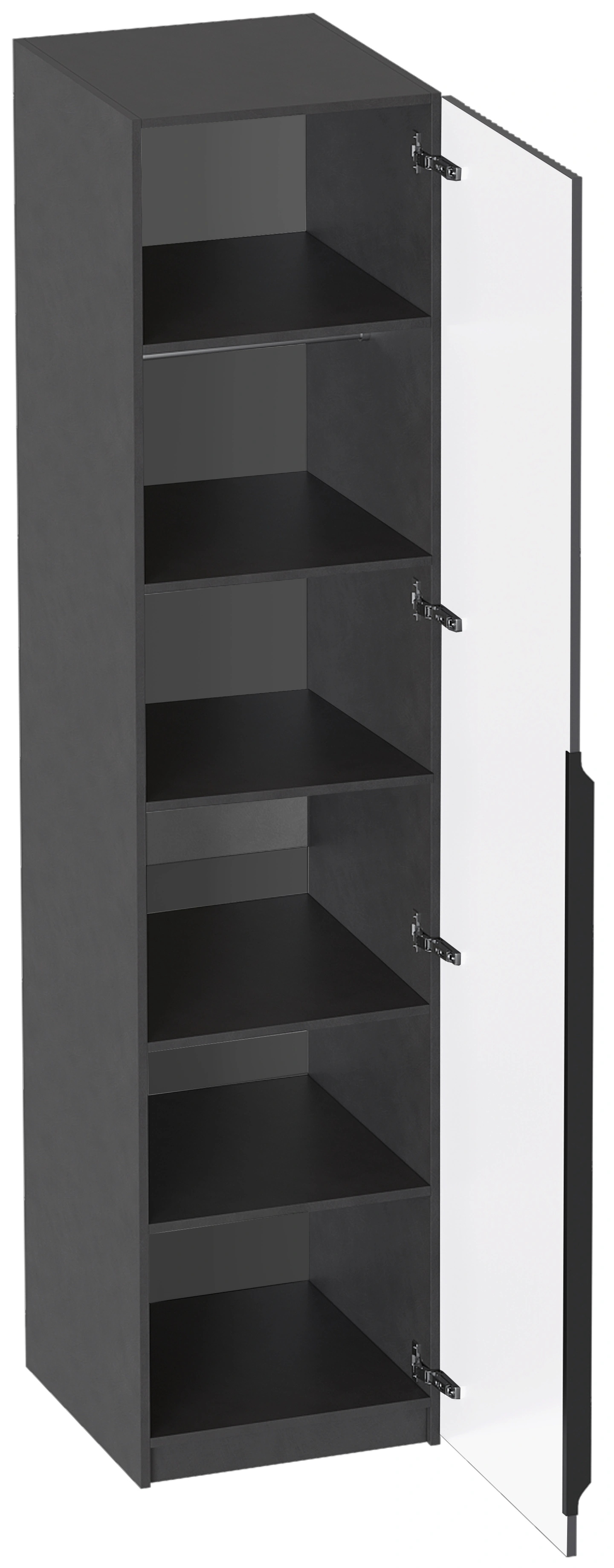 Дверь шкафа оснащена петлями с доводчиком, что обеспечивает ее плавное и бесшумное закрывание. В зависимости от того, как будет крепиться дверь, шкаф можно собрать в правом или левом исполнении.