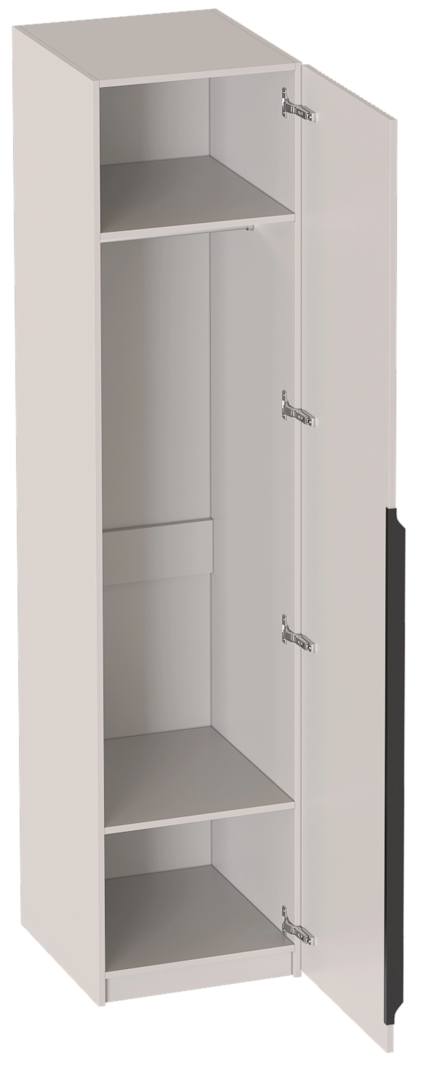 Дверь шкафа оснащена петлями с доводчиком, что обеспечивает ее плавное и бесшумное закрывание. В зависимости от того, как будет крепиться дверь, шкаф можно собрать в правом или левом исполнении.