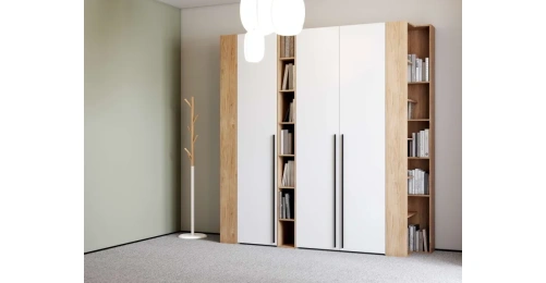 При заказе нескольких модулей шкафной группы, в том числе и стеллажей в комплекте присутствует фурнитура для стягивания модулей между собой (межсекционные стяжки).