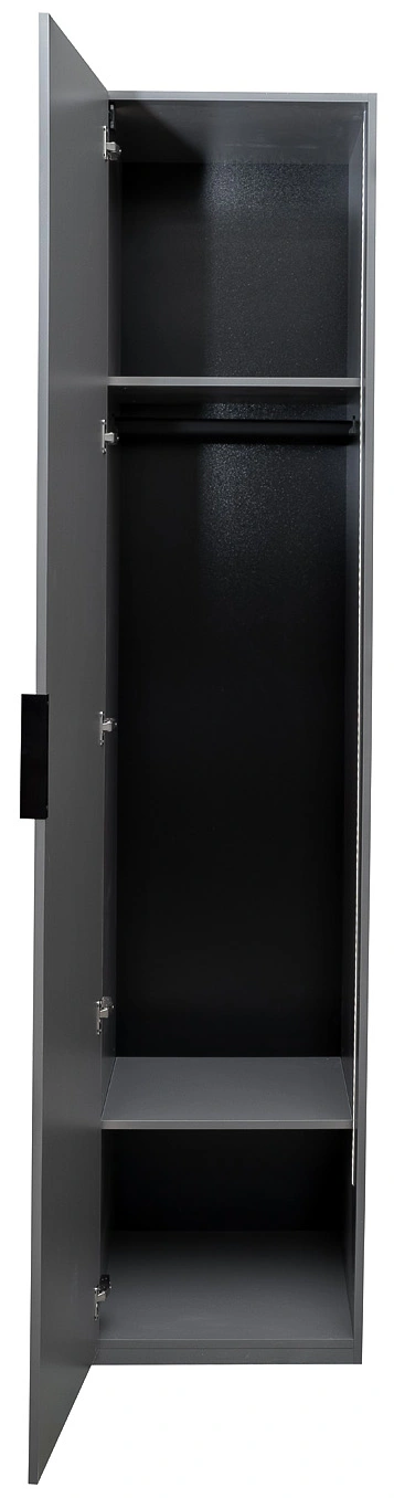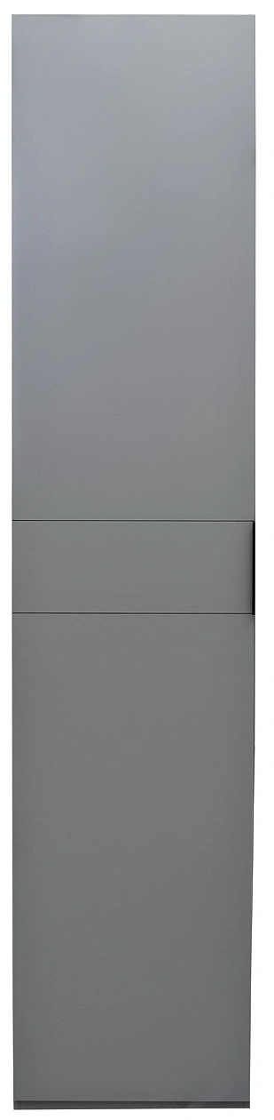 Шкаф-пенал Alto в глубоком сером кобальте — архитектурный акцент для современного интерьера. Его утонченная форма визуально вытягивает пространство, а матовая поверхность с легким бархатистым отливом придаёт благородную глубину. Чёткие линии и почти незаметная ручка подчёркивают лаконичность дизайна, а тонкая горизонтальная перемычка разбивает фасад на ритмичные зоны, создавая эффект сдержанной динамики. Внутри — две регулируемые полки и штанга для вешалок, идеально храннеия одежды или других принадлежностей, скрытых за цельными дверцами с плавным ходом. Этот предмет — не просто система хранения, а дизайнерская мебель, способная задать тон всему интерьеру. Alto гармонично дополнит пространство в стиле неоклассика, ар-деко или утончённый фьюжн, обеспечивая функциональный интерьер без компромиссов в эстетике. Шкаф пенал c полками, глухой (ЛДСП серый Кобальт 6299BS, тм Kronospan).