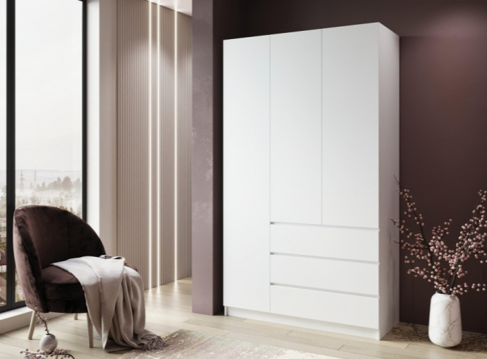 Шкаф трехдверный Мадера, распашной для одежды, лдсп белый