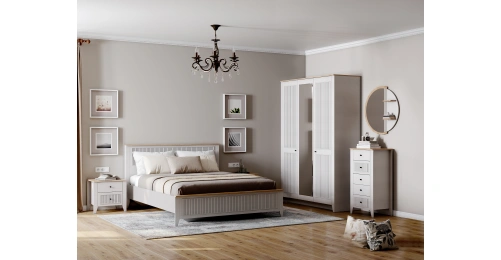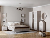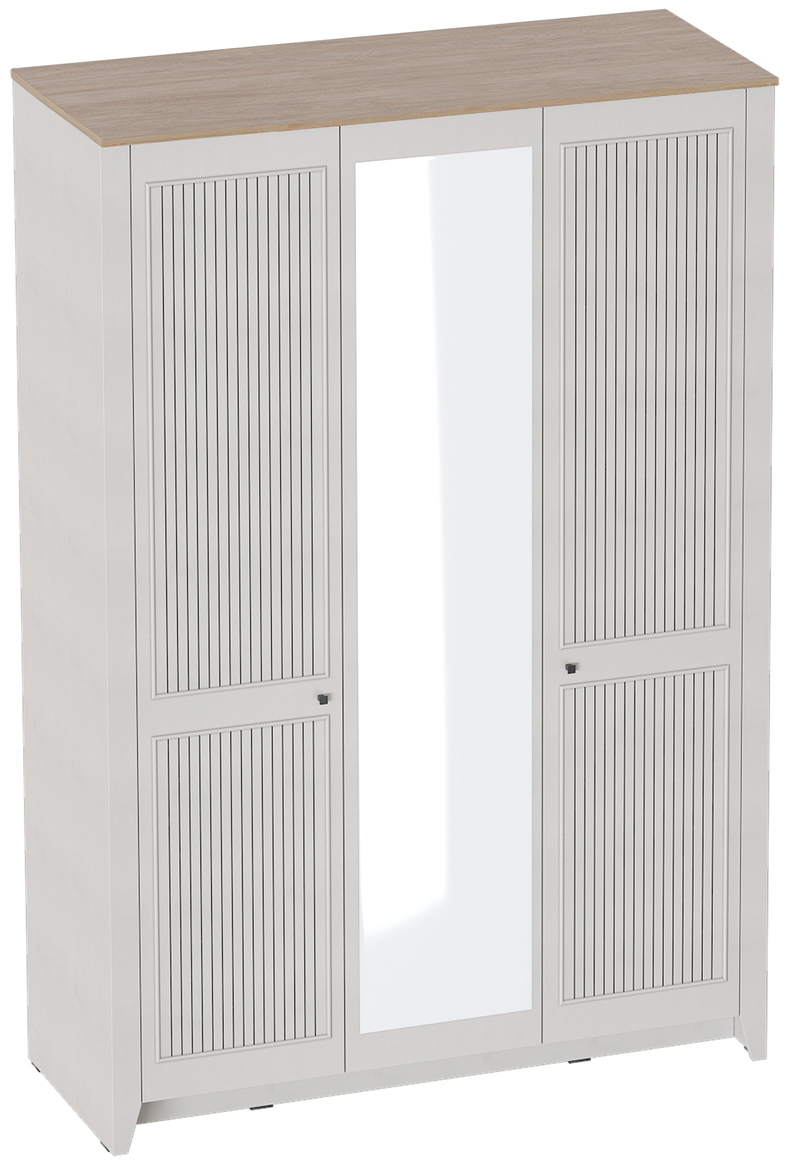 Шкаф 3 дверный Валенсия с зеркалом выполнен из (ЛДСП) в комбинации Дуб натуральный светлый / Персидский жемчуг.