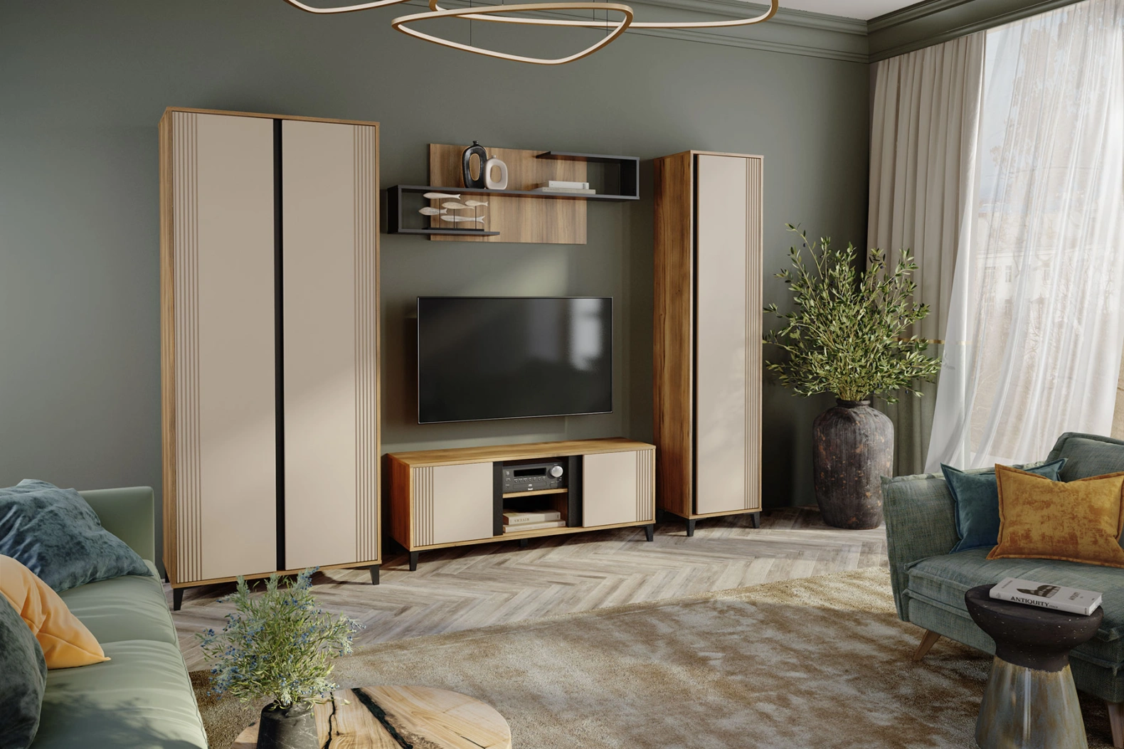 Шкаф "Богемия" изготовлена из высококачественных материалов. Корпус изготовлен из ламинированной древесностружечной плиты толщиной 16мм. Фасады выполнены из МДФ толщиной 19мм и покрыты пленками ПВХ с эффектом Soft touch. Это обеспечивает не только стильный внешний вид, но и приятные тактильные ощущения.