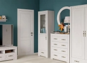 Шкаф-витрина изготовлен из качественных и безопасных материалов. Фасад шкафа украшен изящными ручками, которые придают ему особый шарм. Отличительной особенностью данного шкафа является наличие стеклянной витрины, которая позволяет демонстрировать ваши любимые предметы, книги или коллекции.