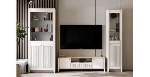 Шкаф-витрина Валенсия, левый, персидский жемчуг / дуб натуральный светлый