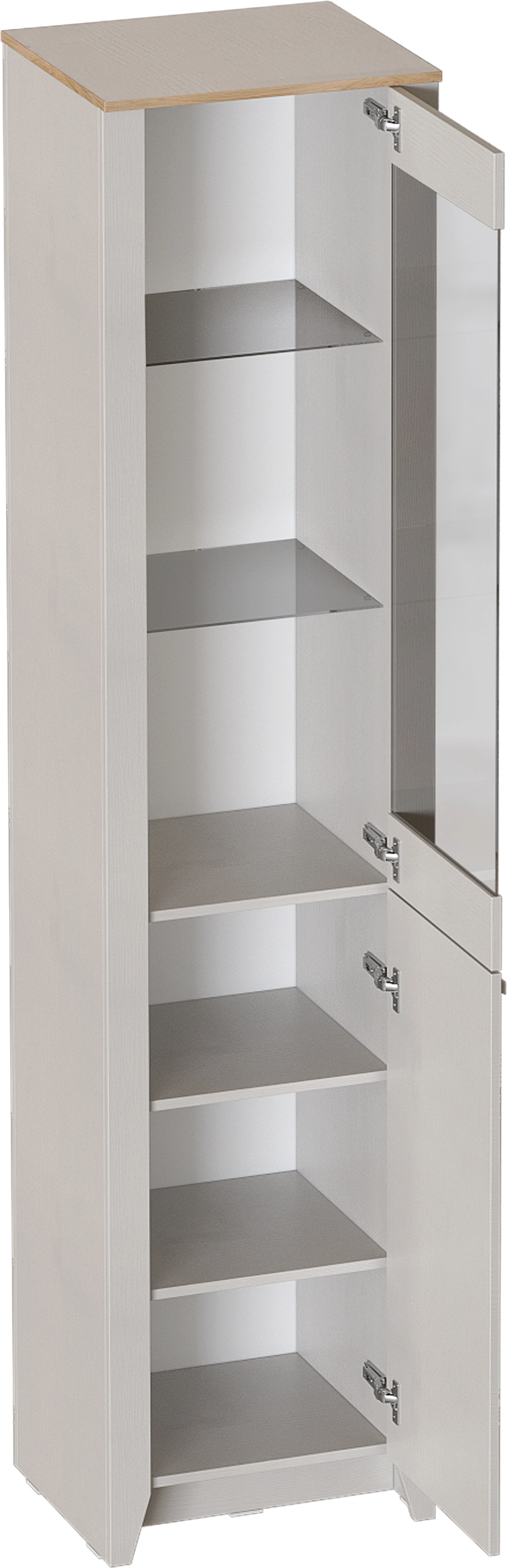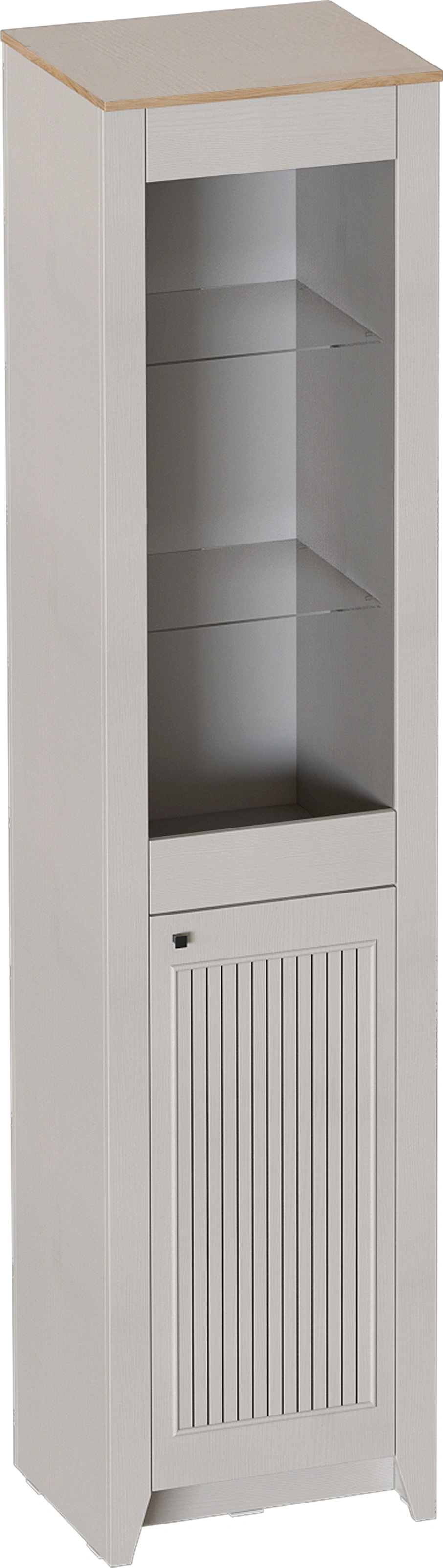 Шкаф-витрина однодверный "Валенсия" выполнен в комбинации Дуб натуральный светлый / Персидский жемчуг. Внутреннее пространство шкафа представляет собой два отделения. Нижнее пространство включает в себя съемные полки. Верхнее отделение со стеклянными полками. Петли без амортизаторов. Шкаф выполнен из безопасных, качественных материалов, что гарантирует долговечность и сохранение первоначального вида на протяжении долгого времени.