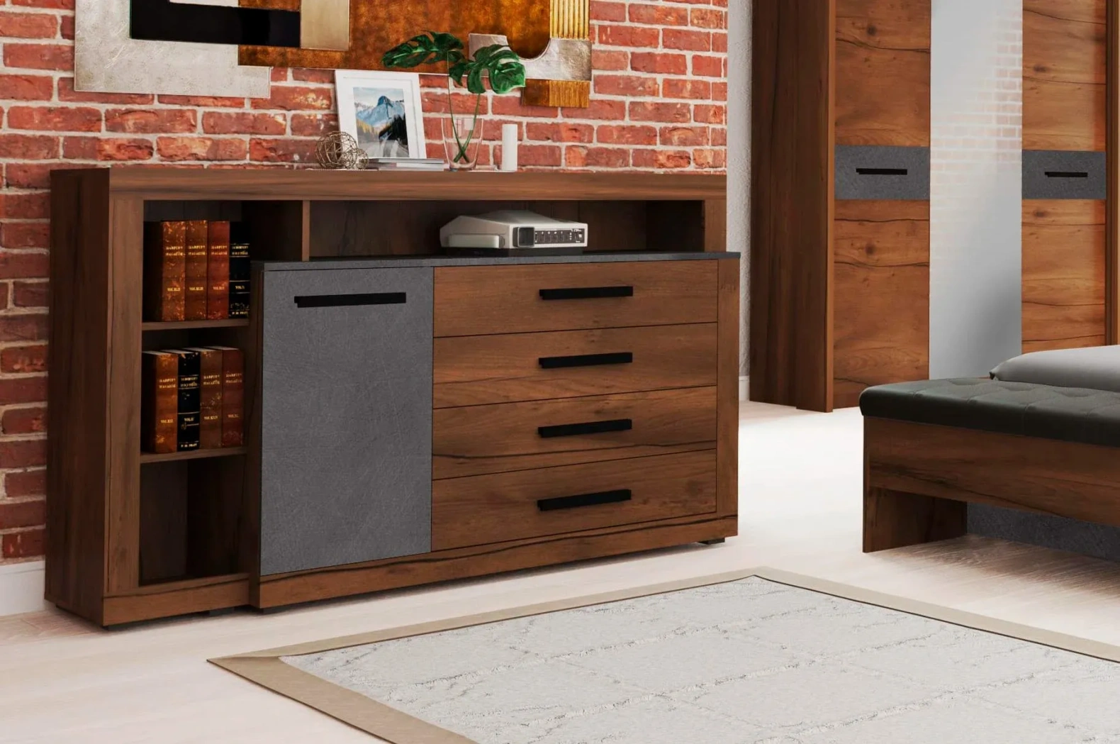 - Тумба с 1 дверью и 4 ящиками