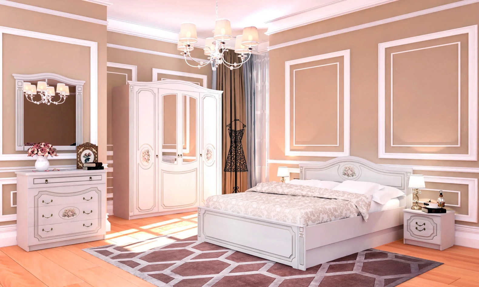 Спальня в цветовом решении "Кофе10 / Капучино" придаст интерьеру воздушность, ощущение роскоши, нежности и легкости, наполнив спальную комнату светом.